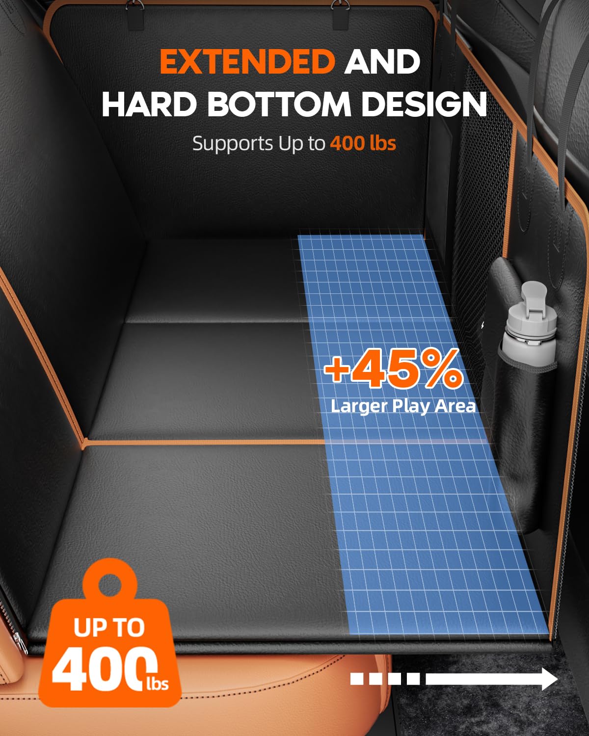 Leather Back Seat Extender For Dog, Waterproof Pet Car Seats Cover For Backseat With Hard Bottom, Rear Hammock Carseat Protector For Suv Truck Cargo Vehicle Liner, Large Bed Travel Mat Accessories