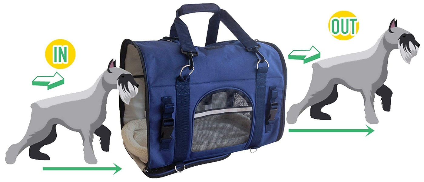 Q: What features make this carrier comfortable for pets?A: This carrier features high ventilation meshes for airflow, a sturdy non-bendable floor for stability, and a comfortable hand washable fleece bed. Additionally, the flexible frames keep the carrier upright for your pet's comfort during travel.