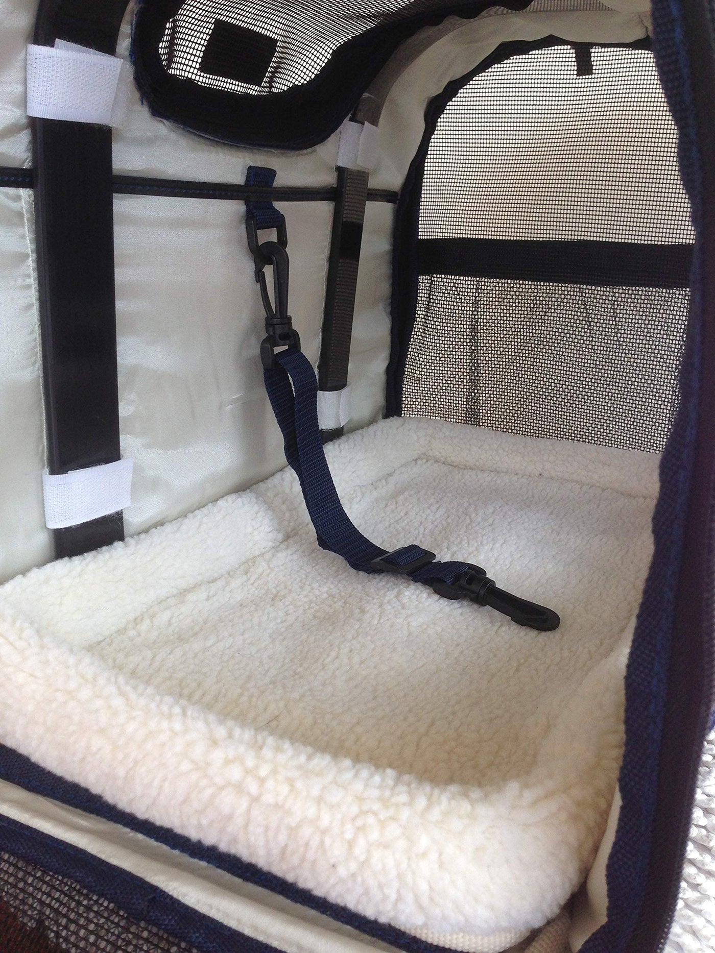 Q: How do I clean the pet carrier?A: The carrier is made from high-quality, durable fabric that is easy to clean. You can hand wash it, and the fleece bed inside is removable for simpler cleaning. Ensure to follow care instructions for the best maintenance.