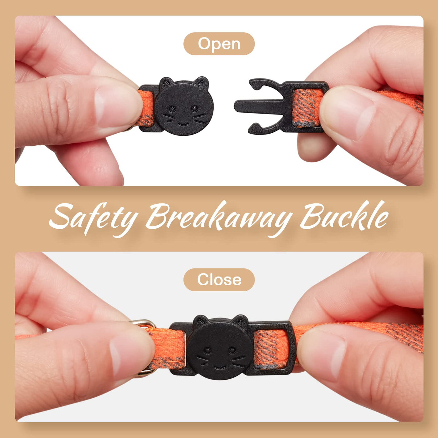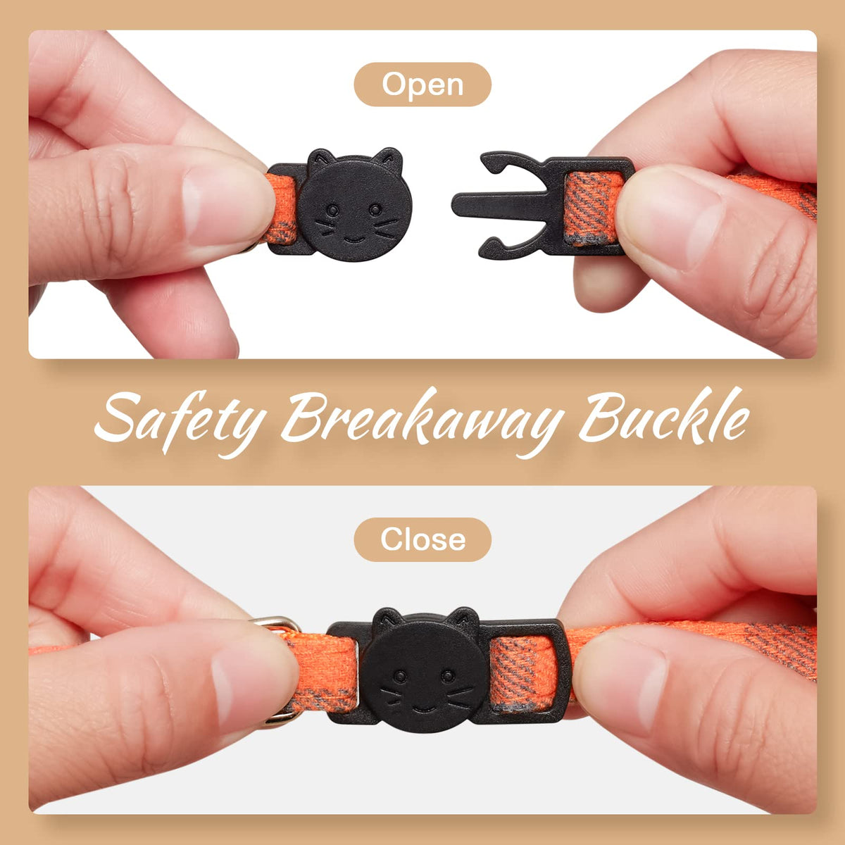 Q: Are these collars safe for my cat?A: Yes, the collars feature a breakaway safety buckle that releases when pressure is applied, ensuring your cat's safety if they get caught on something.