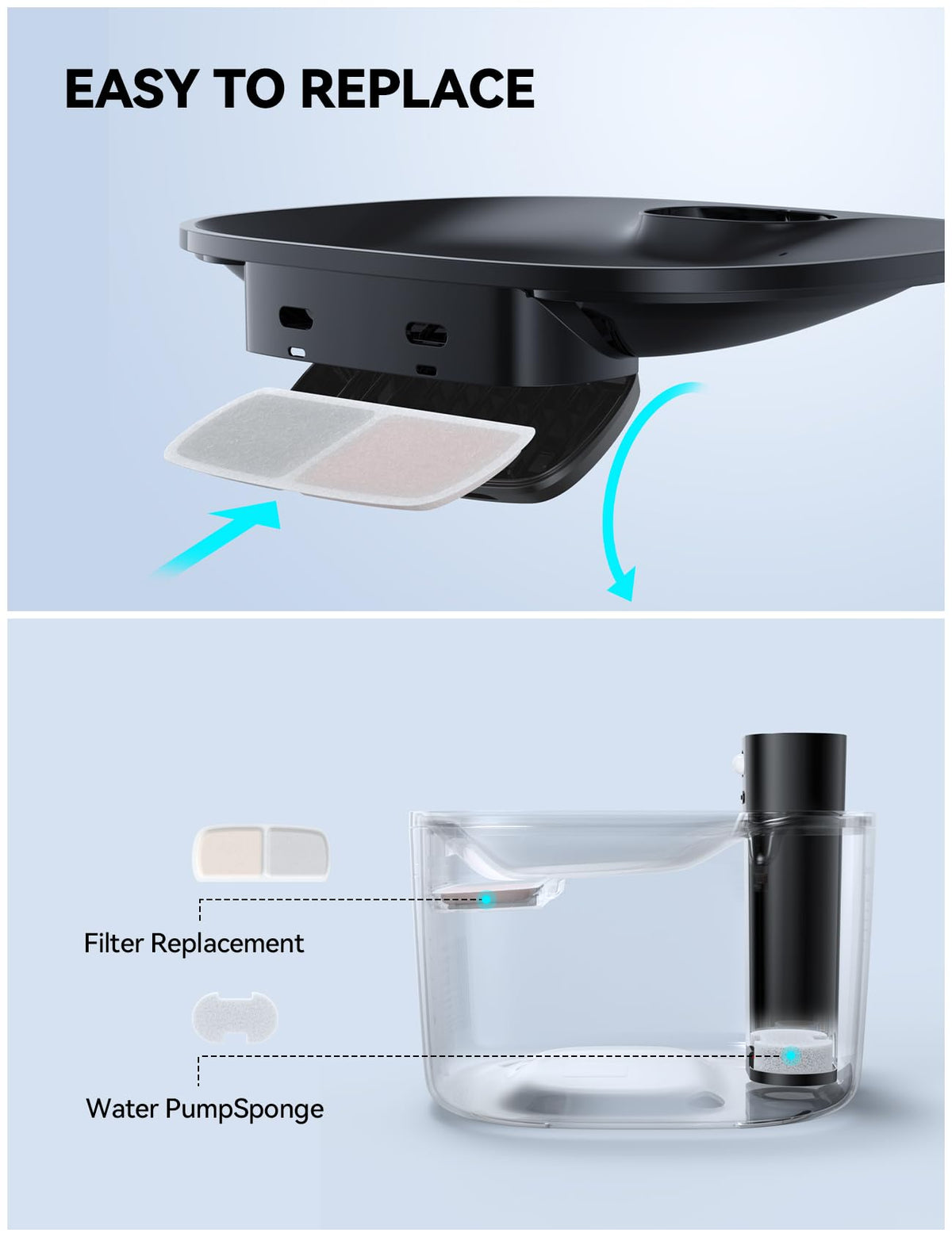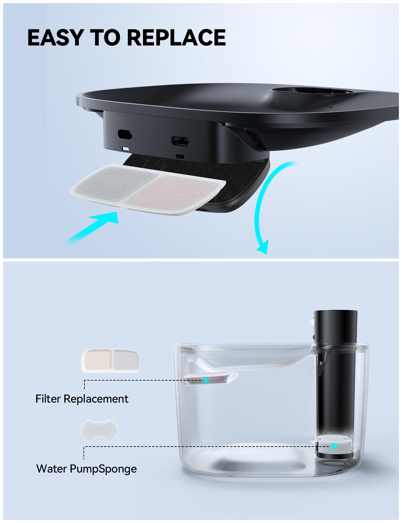 6 Pack Filter For Cat Water Fountain & 6 Pack Sponges Filter Replacement, Cat Drinking Fountain Filter For 135 Fl Oz/4L Cat Wate