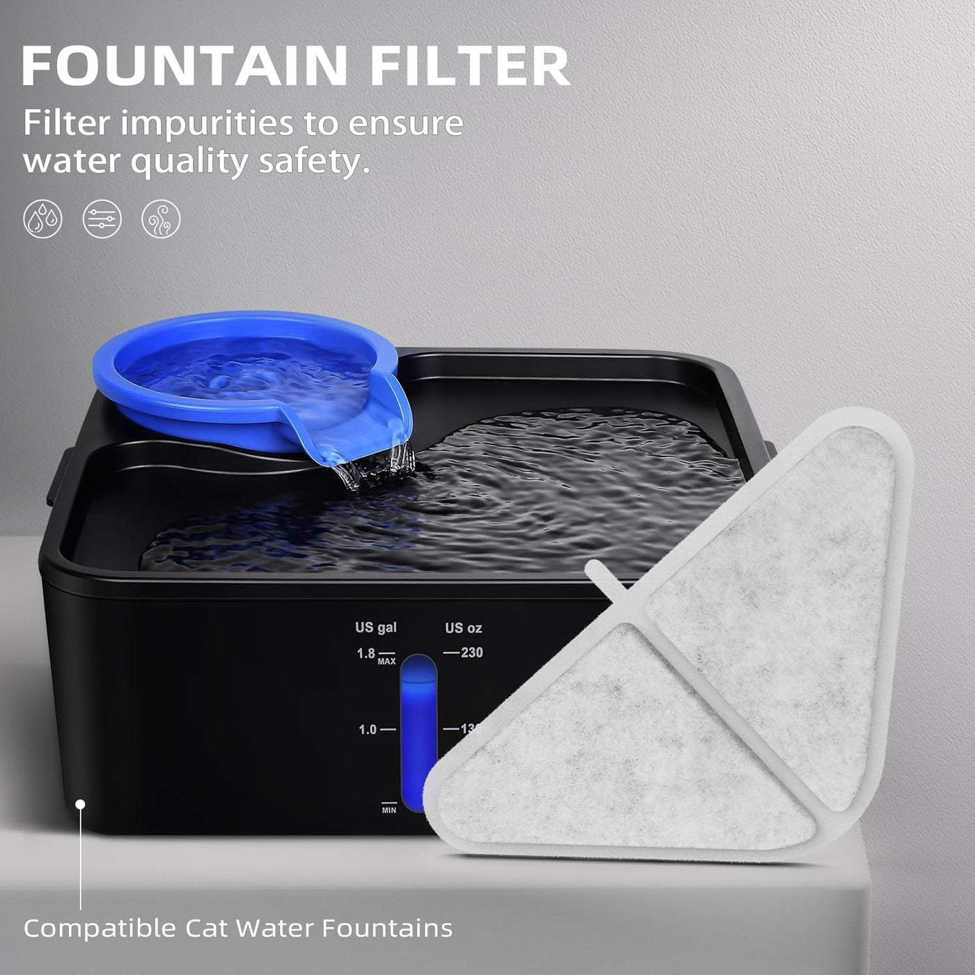 Introducing The Water Fountain Filter, A Must-Have Addition For Your Pet'S Water Fountain. Designed With Your Pet'S Health And Well-Being In Mind, This Filter Utilizes Coconut Shell Activated Carbon To Effectively Absorb Odors And Filter Out Debris. Ensure Fresh And Clean Water For Your Pets With Our Long-Lasting Filters. For Optimal Results, We Recommend Replacing The Mesh Filter, Sponge, And Water Every 2 Weeks. Regular Filter Replacement Is Necessary For Your Pets' Overall Health. This Filter Pack Is Compatible With Our 230Oz/7L Water Fountains Only. With Our One-Step Replacement Feature, Maintaining Hygiene Is Effortless. Rinse The Cotton Filter, Remove The Bag And Sponge, And Enjoy A Hassle-Free Process.