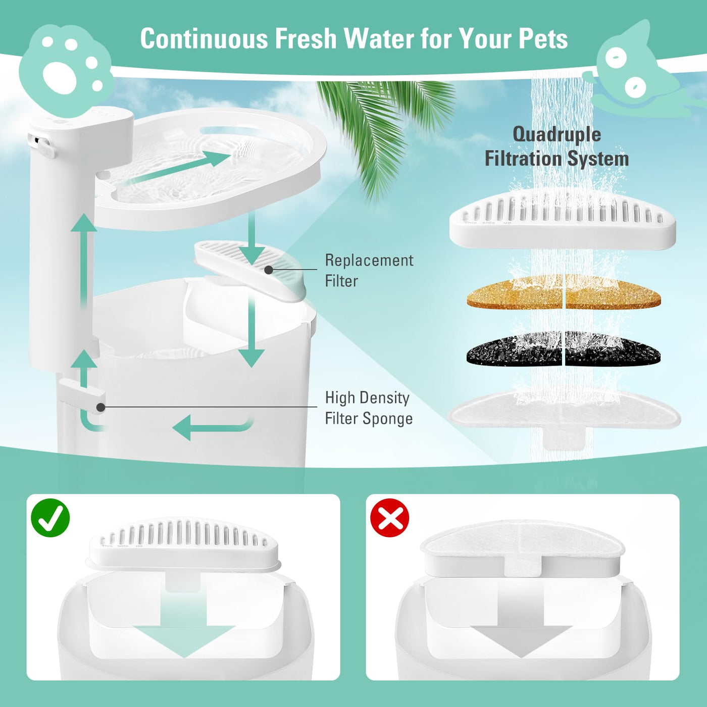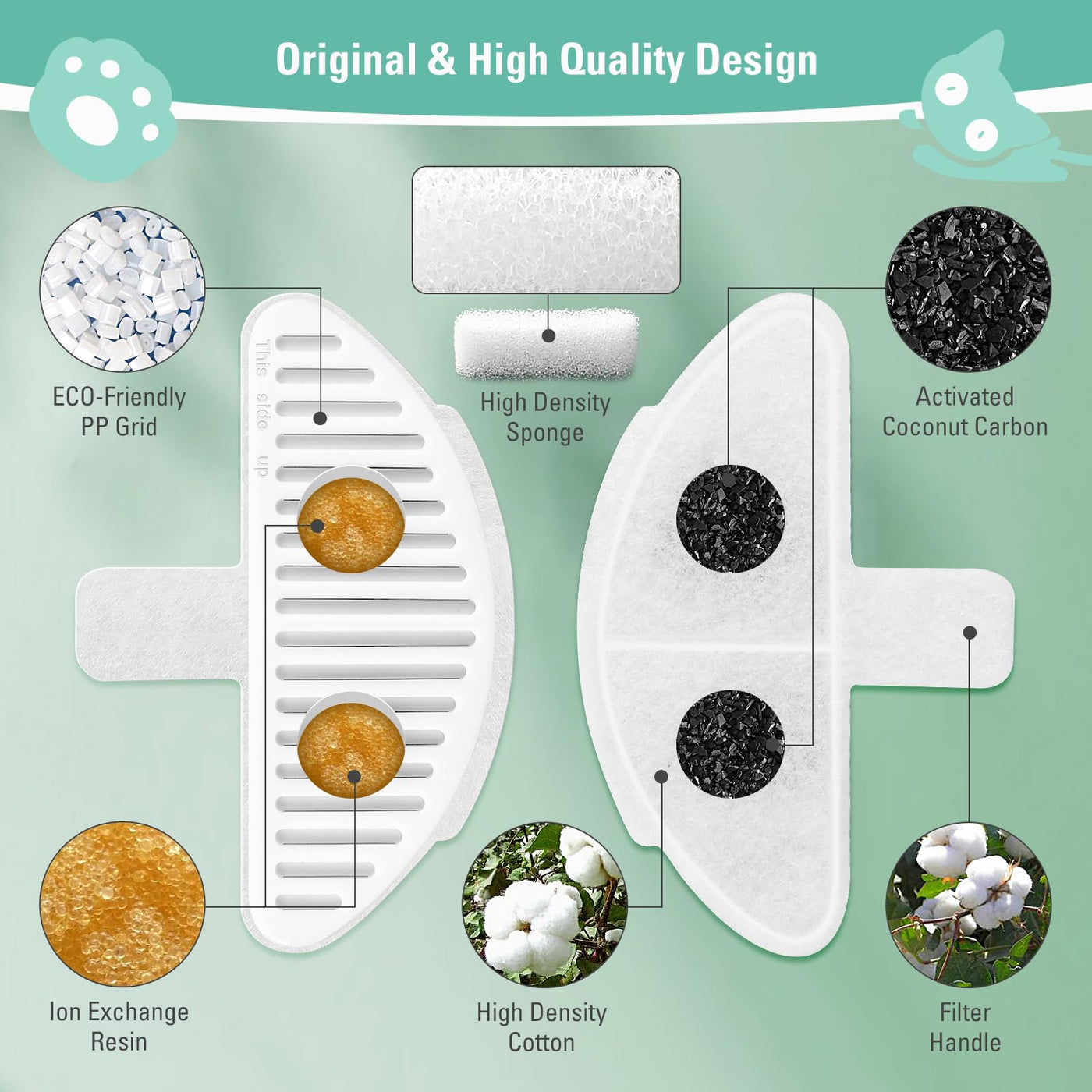 6 Pack Replacement Filters & 12 Pack Filter Sponges For 67Oz/2L Wireless Automatic Pet Fountain, Bflicroy Cat Water Fountain Fil