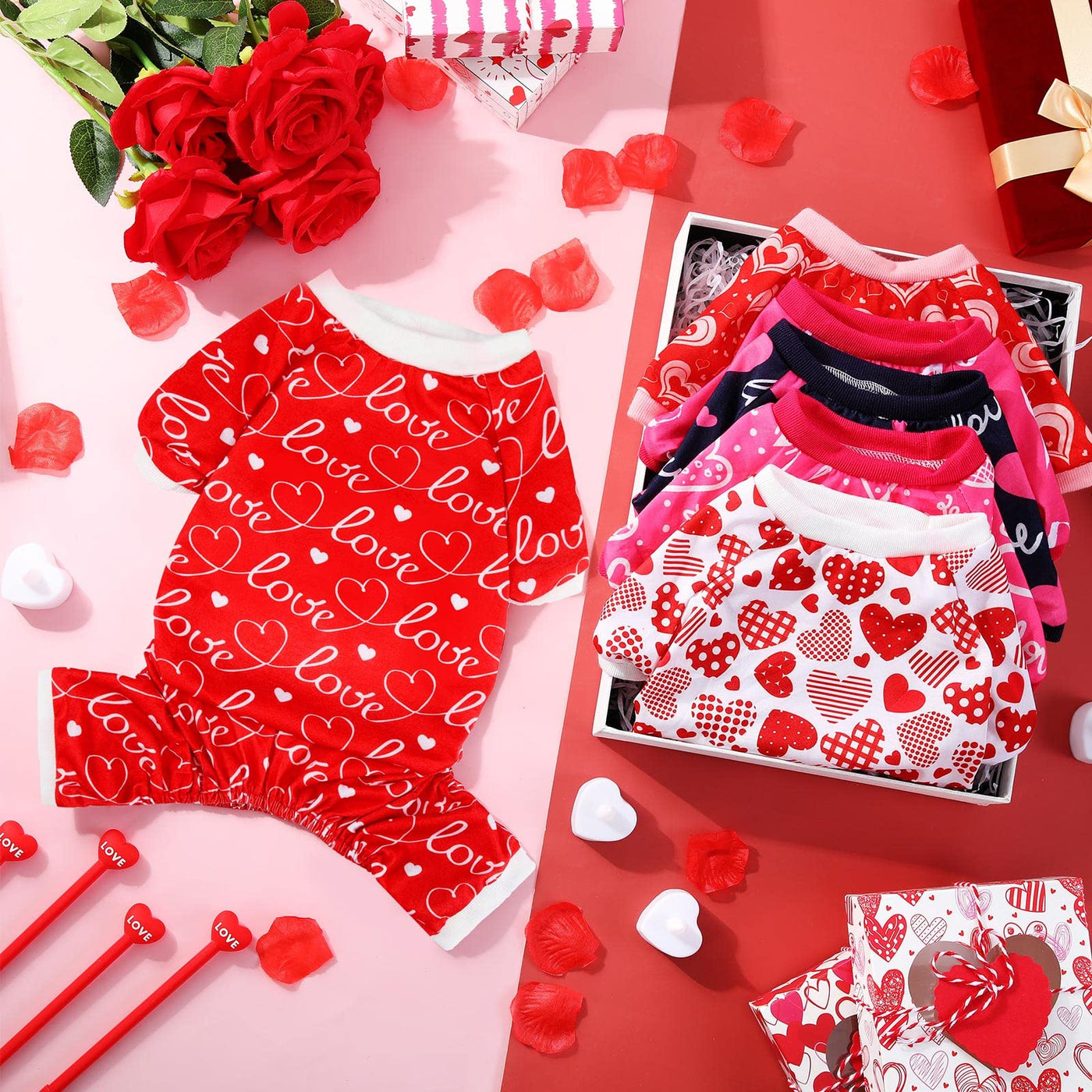 6 Pack Valentines Dog Pajamas Heart Pattern Dog Clothes Dog Costumes For Small Medium Large Puppy Dog Cat Valentines Party Cosplay (Large)