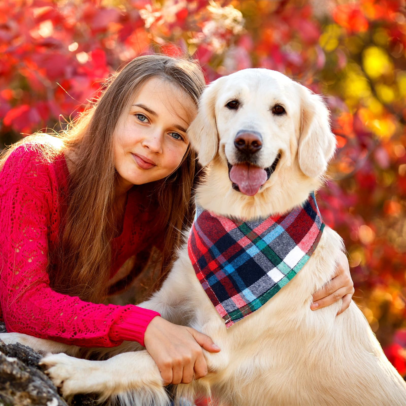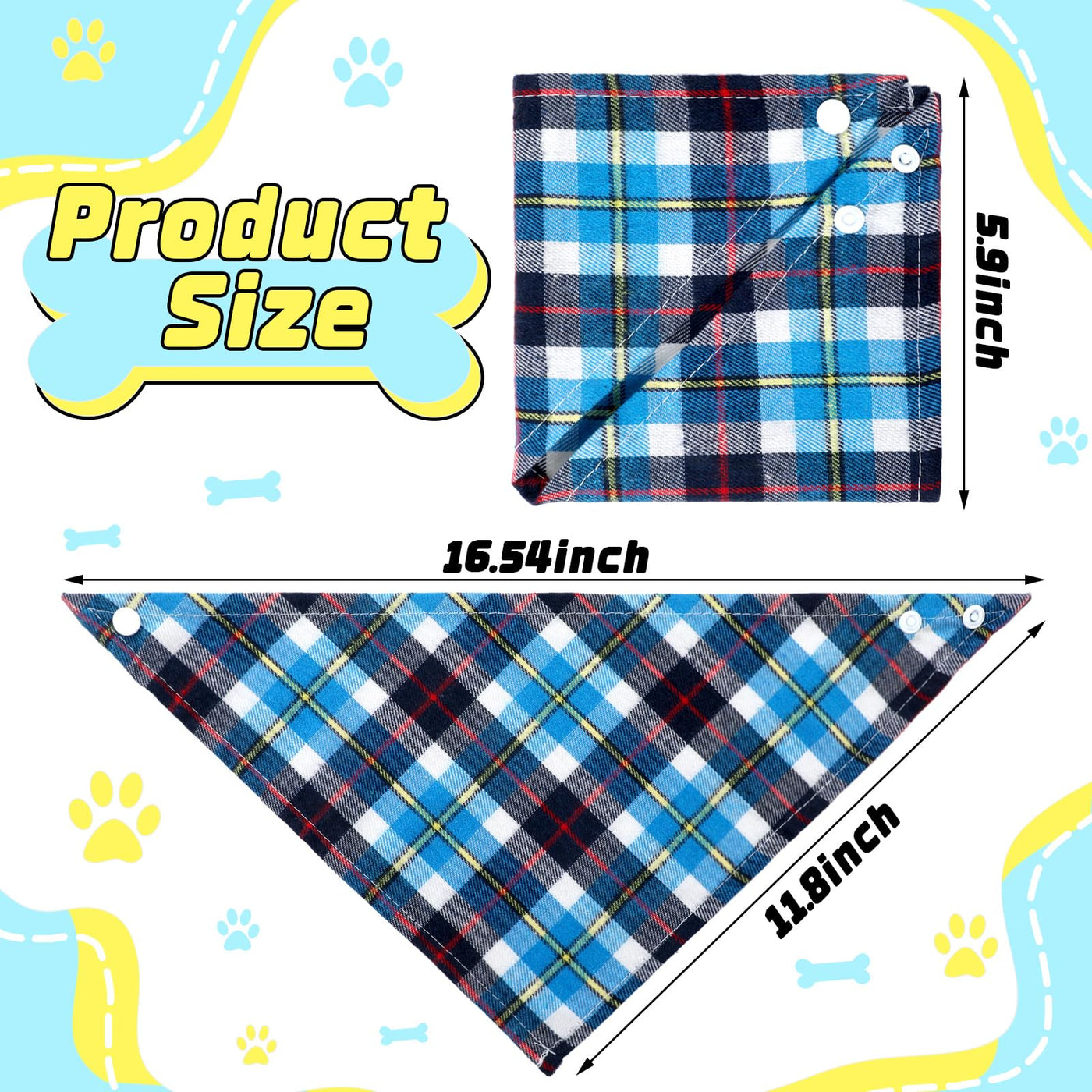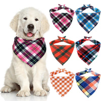 6 Pieces Triangle Dog Bandana Dog Scarf Plaid Printing Adjustable Bibs Scarf Washable Square Kerchief Bandana Set For Small To L