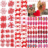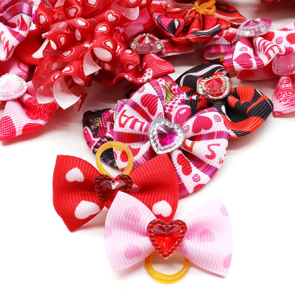 60Pcs Dog Bows With Rubber Bands Love Heart Dog Bowknot Hair Bows Red Pink Puppytopknot Bows For Day Doggie Cat Bunny Yorkie Pet