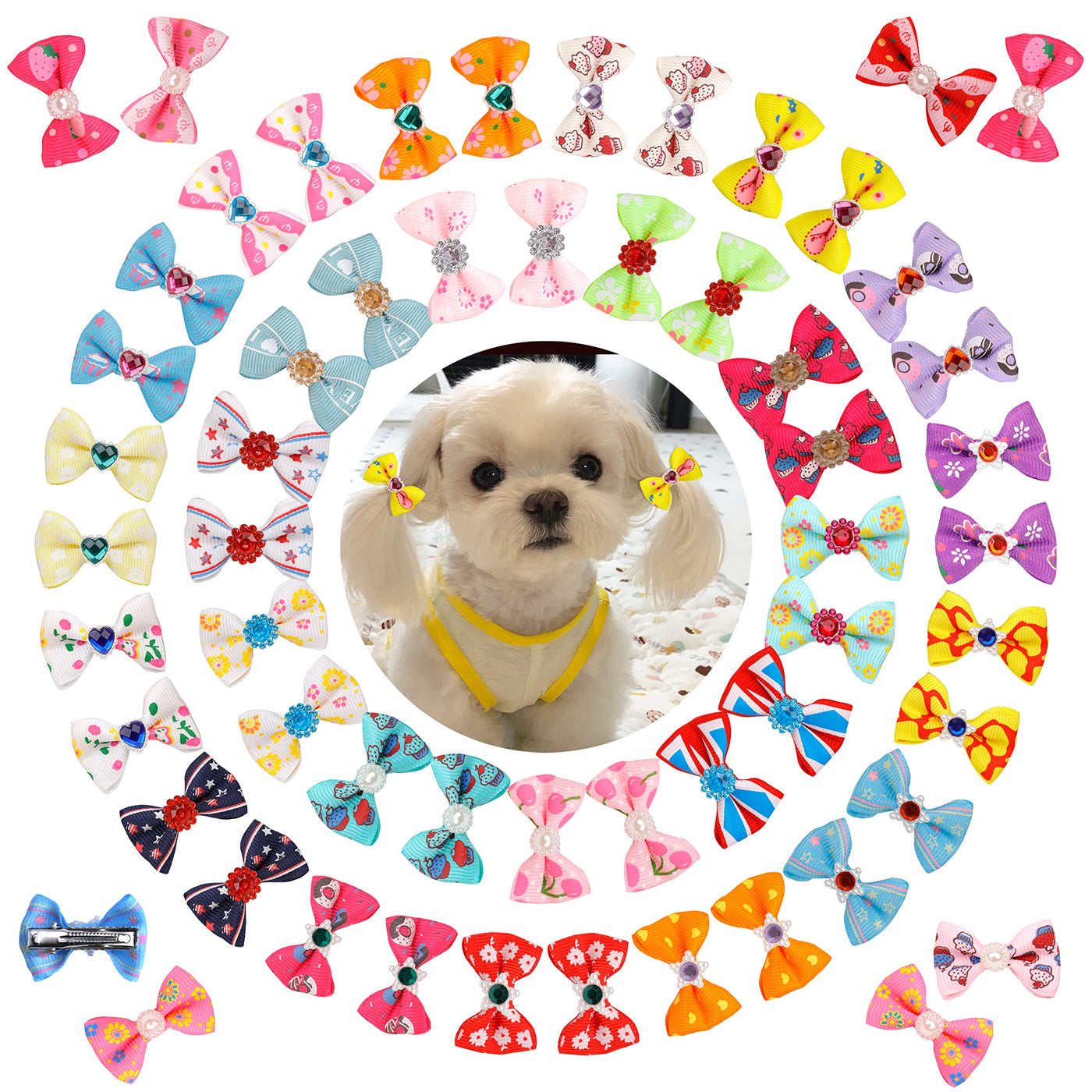Puppy Dogs Hair Barrettes Bows with Metal Clips Rhinestone Tiny Bowknot Hair Bows Hair Topknot Hair Clips for Cat Puppy Party Birthday Handmade Hair Accessories Pet Grooming Products 30Pairs