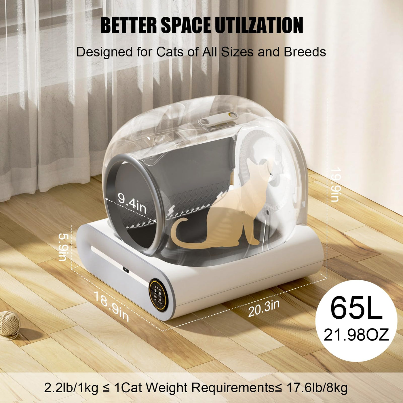 65L/9L Large Capacity Self-Cleaning Cat Litter Box for Multiple Cats, Automatic with App Control, No Scooping Needed, Easy to Cl