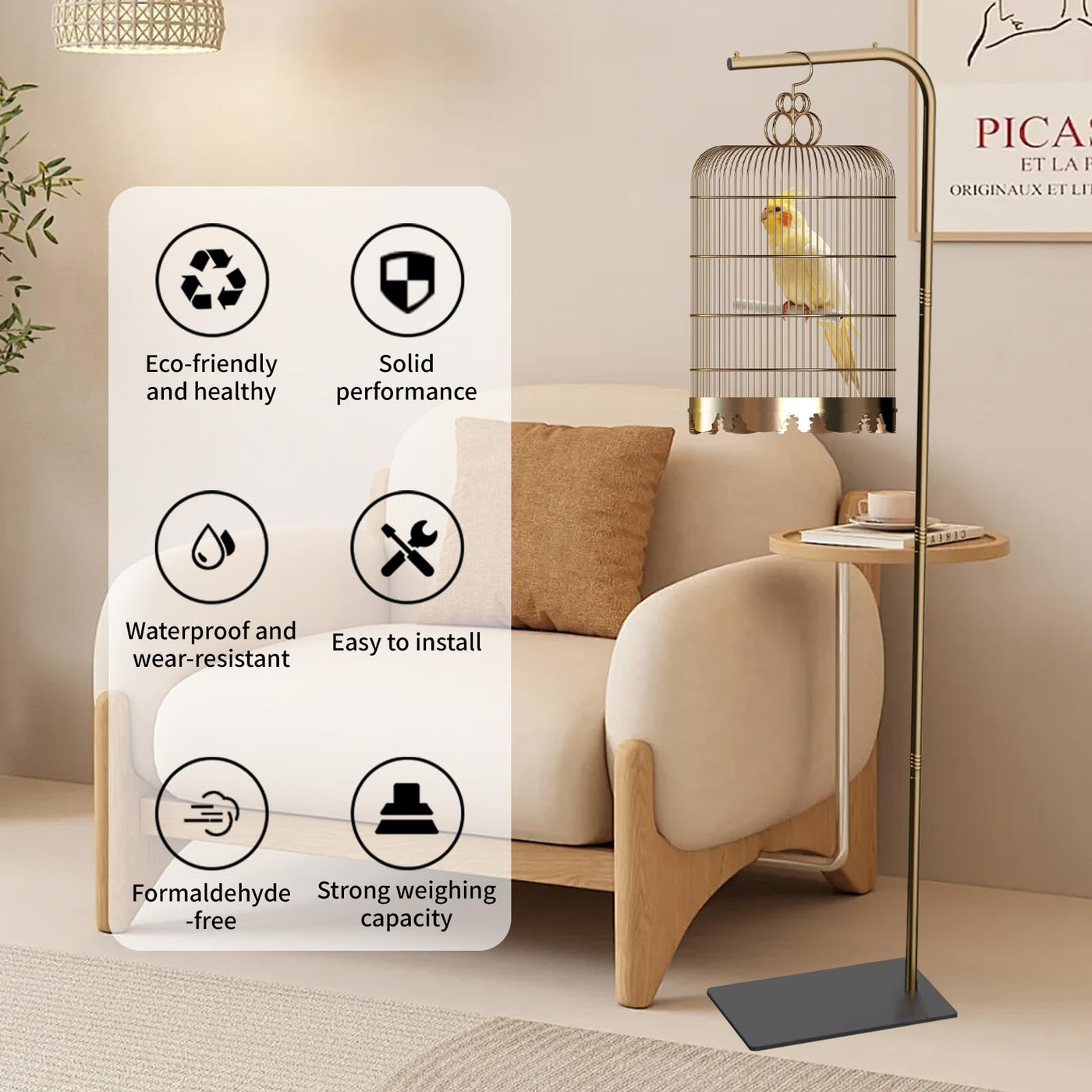 Easy to install:This birdcage rack features a detachable suspension design, just twist a few individual pipes together and insert them into the base, very simple and convenient.Viewing function: Due to the unique design of suspended birdcages, they are also often used as interior decorations to add to the fun of life.Appropriate height: 67 inches, which is one of the main features of the birdcage, provides a large vertical space suitable for birds that need to fly or jump.Note:Ensure that the load-bearing capacity of the birdcage is sufficient to support the weight of the birdcage itself and the birds.Regularly check the stability of the birdcage to prevent accidents caused by loose hanging.Reasonably arrange the facilities inside the birdcage according to the species and habits of birds.Maximum load-bearing capacity:35 pounds