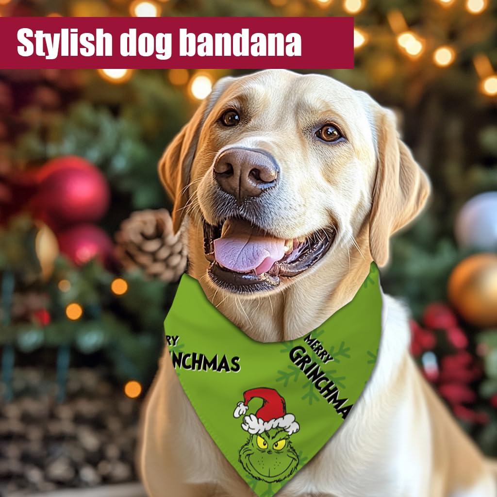 68Win Funny Christmas Bandana Set, Adjustable Double Sided Triangle Bibs Scarf For Medium Large Dogs, Set Of 2