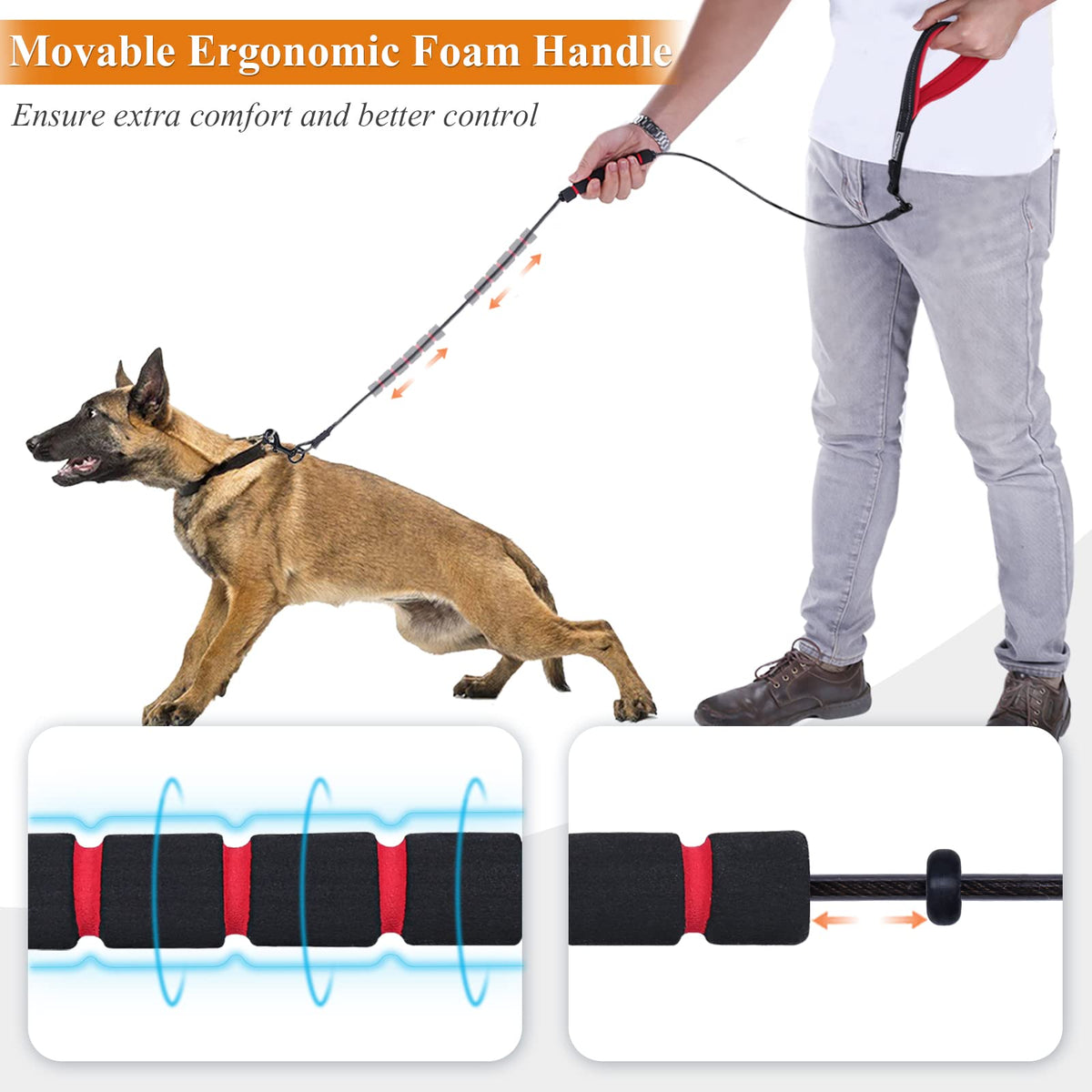 Chew Proof & Durable: This cable leash is made of multi-strand stainless steel wire ropes, even heavy chewers and teething puppies can't break through, super strong to withstand pull force up to 200lbs | Extra Handle for BETTER CONTROL: Designed with high density foam, our extra MOVABLE handle is soft and supportive for your hands, ergonomic curved surface is an excellent choice as a traffic handle. Adjust the position of this handle according to your habit and ensure the best control of your furry companion | Padded & Reflective Nylon Handle: Chew proof leash with comfortable neoprene padded handle ensures an unexpected comfortable grip and protects your hands from rope burns when dog pulls. Reflective threading through the full handles enhances super high visibility to keep safe at night | Waterproof and Easy to Clean: Wrapped with vinyl coated PVC (not chew resistant), the stainless steel rope leash is waterproof and easy to clean, allowing you walk your dog freely even in rainy days; no need to worry about going moldy like other dog leashes. NOTES: the padded nylon handle is not waterproof | Heavy Duty Clasp: Premium components for maximum strength, our training leash matches with heavy-duty metal clasp which is durable enough to last longer than most others. A lightweight yet strong leash fits for small medium and large breed dogs