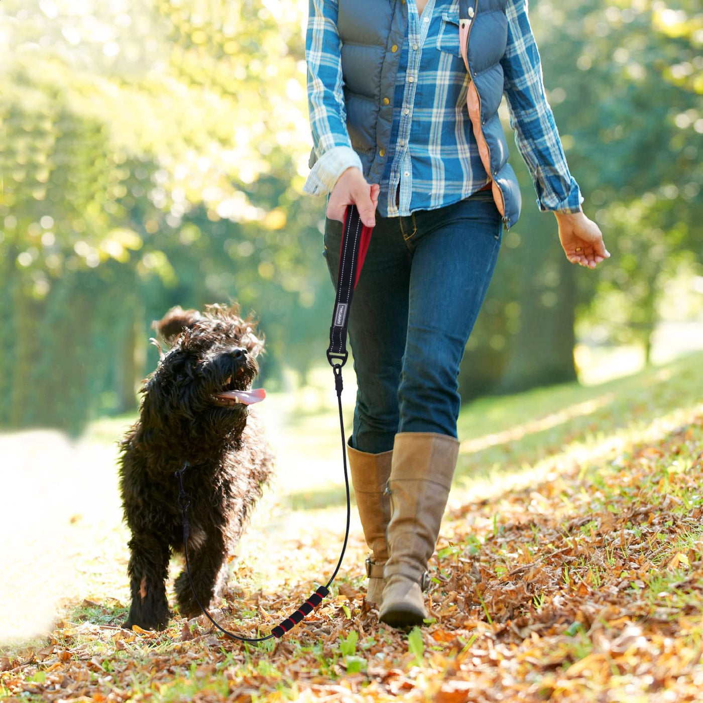 Q: How does the extra handle improve control while walking my dog?A: The extra movable handle is designed with high-density foam, providing a soft and supportive grip. You can adjust its position for optimal control, ensuring a safe and comfortable experience when walking your dog.