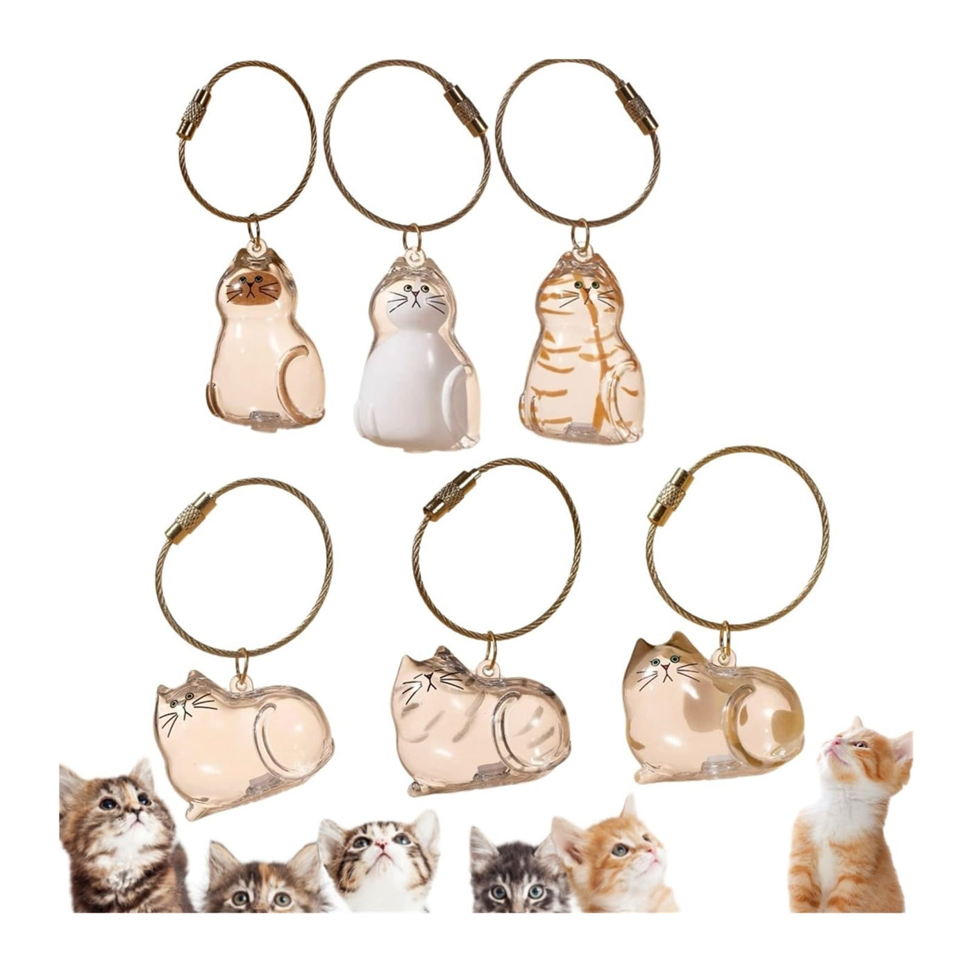 6Pcs Fur-Ever Loved Cat Hair Memorial Pendant, Cat Fur Keepsake Capsule Pendant, Cat Fur Keepsake Keychain, Pet Hair Storage Bot