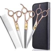 7 Inches Professional Pet Grooming Scissor, 440C Japanese Steel Straight & Curved & Thinning & Chunker Shears/Scissors For Dog Cat And More Pets (7 Inch-Grooming Scissors Set)