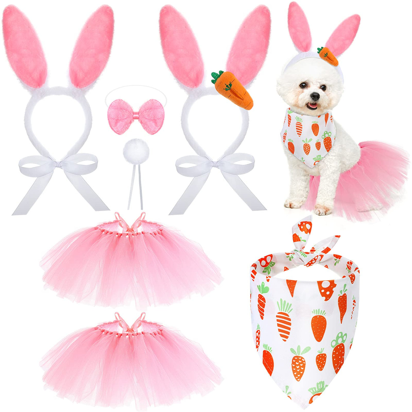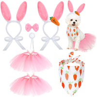 7 Pieces Easter Dog Bunny Costume Set, Pet Bunny Ears Headband, Pink Tutu Skirt, Triangle Bibs Pet Scarf With Tail, Bow Tie Coll