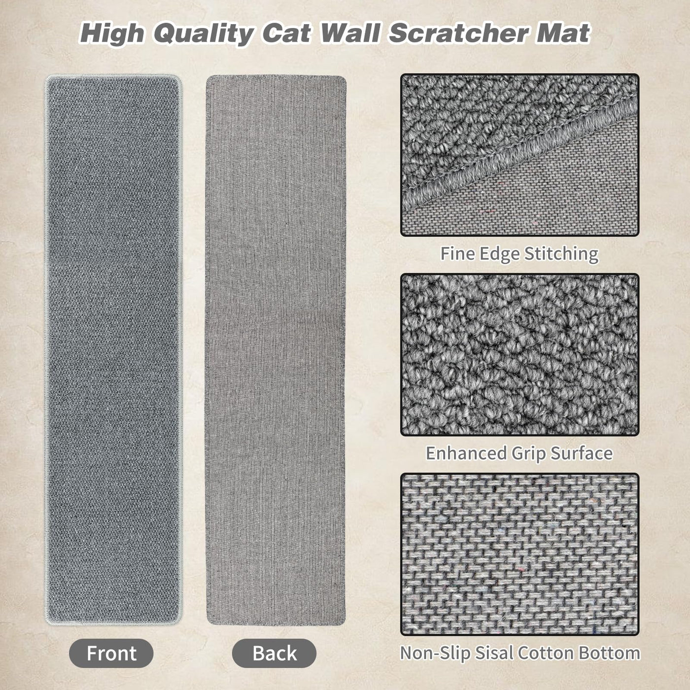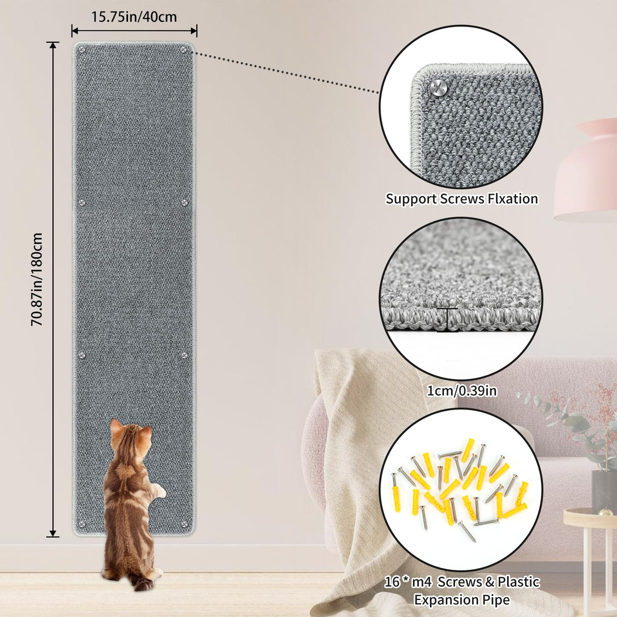 Claw Sharpening Is In The Nature Of Cats, Wall Mounted Cat Scratcher Can Provides A Comfortable Scratching Surface For Cats, Reduce Damage To Furniture By Diverting The Cat'S Attention To It Thickened Cat Wall Climbing Carpet Can Help Cats Build Muscle, Relieve Stress, And Release Excess Energy Wear-Resistant Material: Imitation Sisal Cat Wall Scratcher Mat Is Durable, Stain-Resistant And Easy To Clean Whilst Maintaining A Soft Stronger Fixing: Screws And Pieces Plastic Expansion Pipe Will Make The Installation More Firmly And Stably, Not Easy To Fall Off Product Size: 71''Length X 15.7''Width X 0.39'' Thick Packing List: 1 X Cat Scratch Wall Mat, 16 X Screws And 16 X Plastic Expansion Pipe