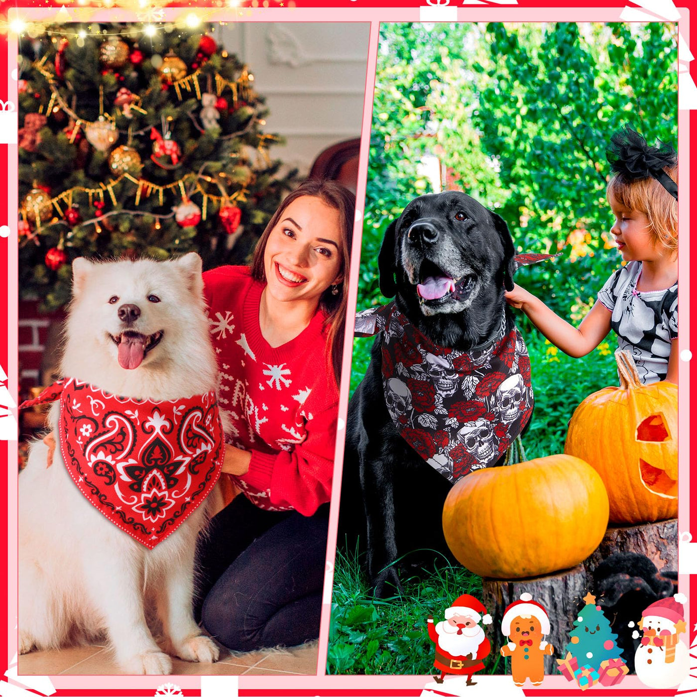 Q: What sizes do the dog bandanas come in?A: The dog bandanas measure approximately 21.6 x 19.6 x 19.6 inches (55 x 50 x 50 cm), making them suitable for most small and medium-sized dogs.