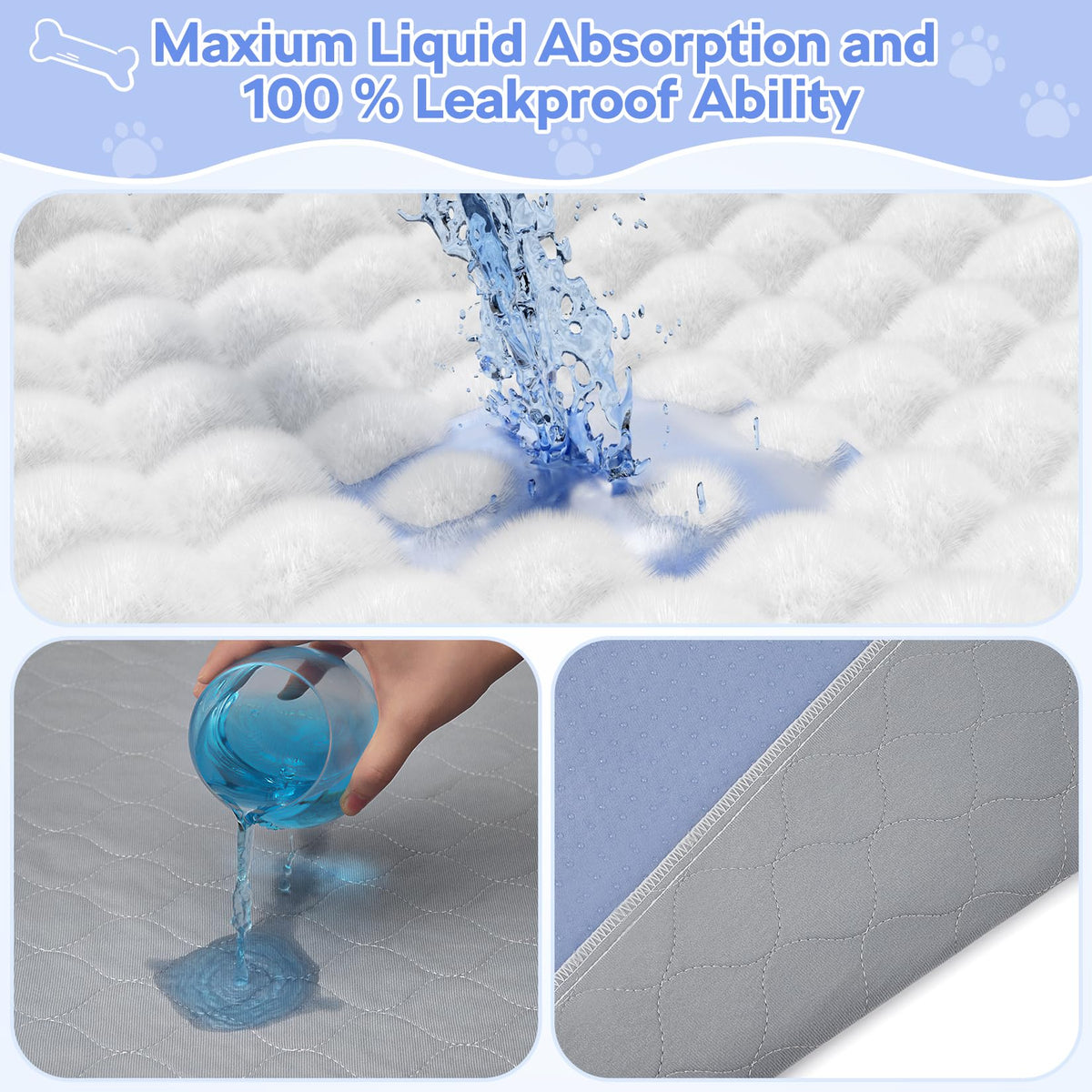 72 x 72 Extra Large Puppy Pads - Waterproof Quick Drying Pee Pads for Dogs, Reusable Pet Training Pads, Anti-Slip Floor Mat for