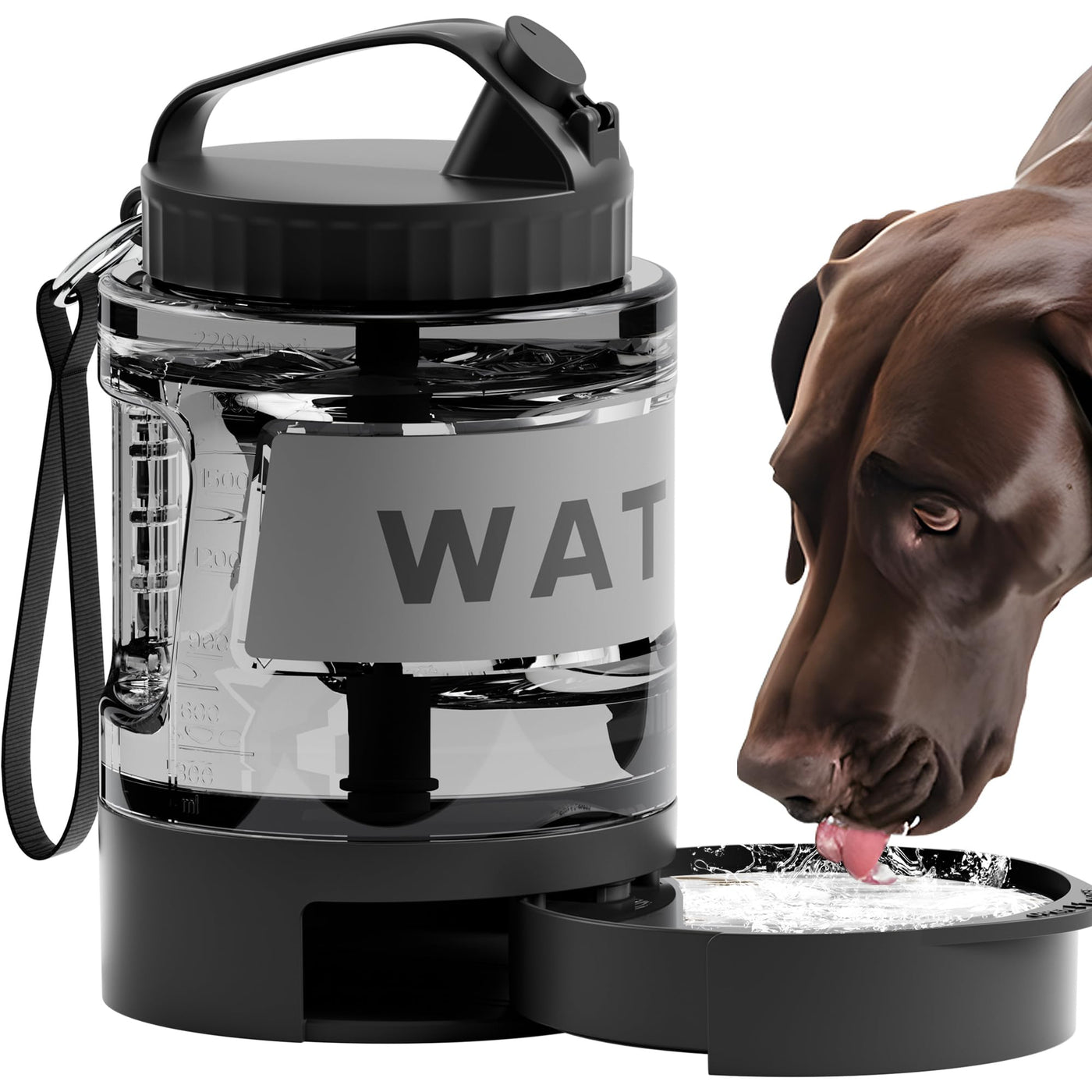 77oz Dog Water Bowl Dispenser,Dog Camping Essentials Large Dog Water Bottle with Pull-Out Drinking Bowl,Portable Travel Water Bo