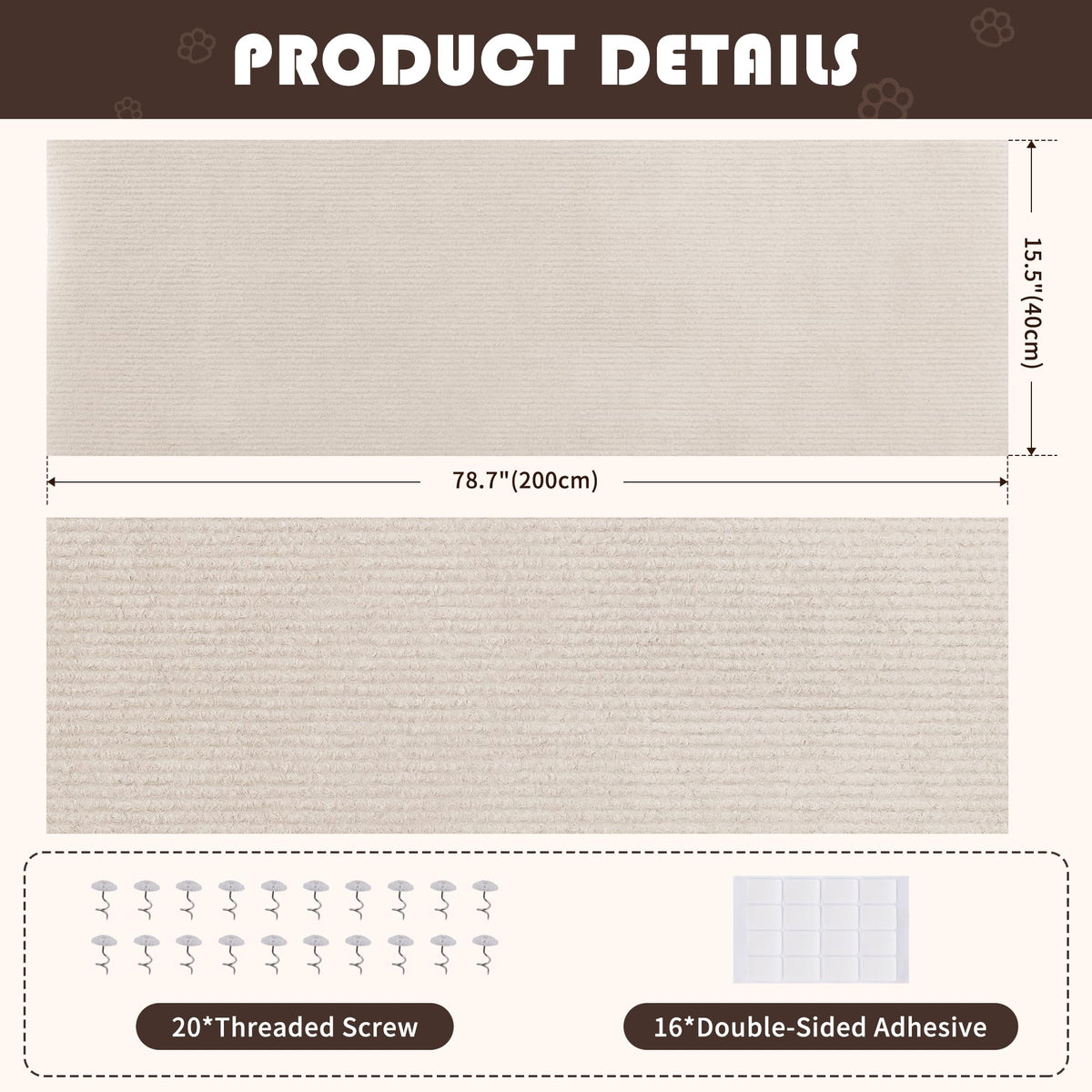 78.7X15.8Inch Cat Scratch Furniture Protector, Self-Adhesivet Scratch Mats Deterrent For Furniture, Diy Climbing Cat Scratcher C