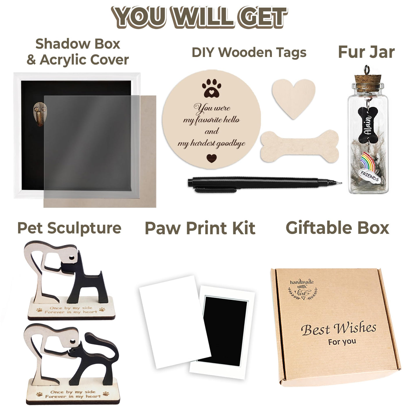 8.6'' Pet Memorial Shadow Box Gift Collar Holder White Picture Frame Paw Print Kit Rainbow Fur Ashes Bottle Pet Wood Sculpture S