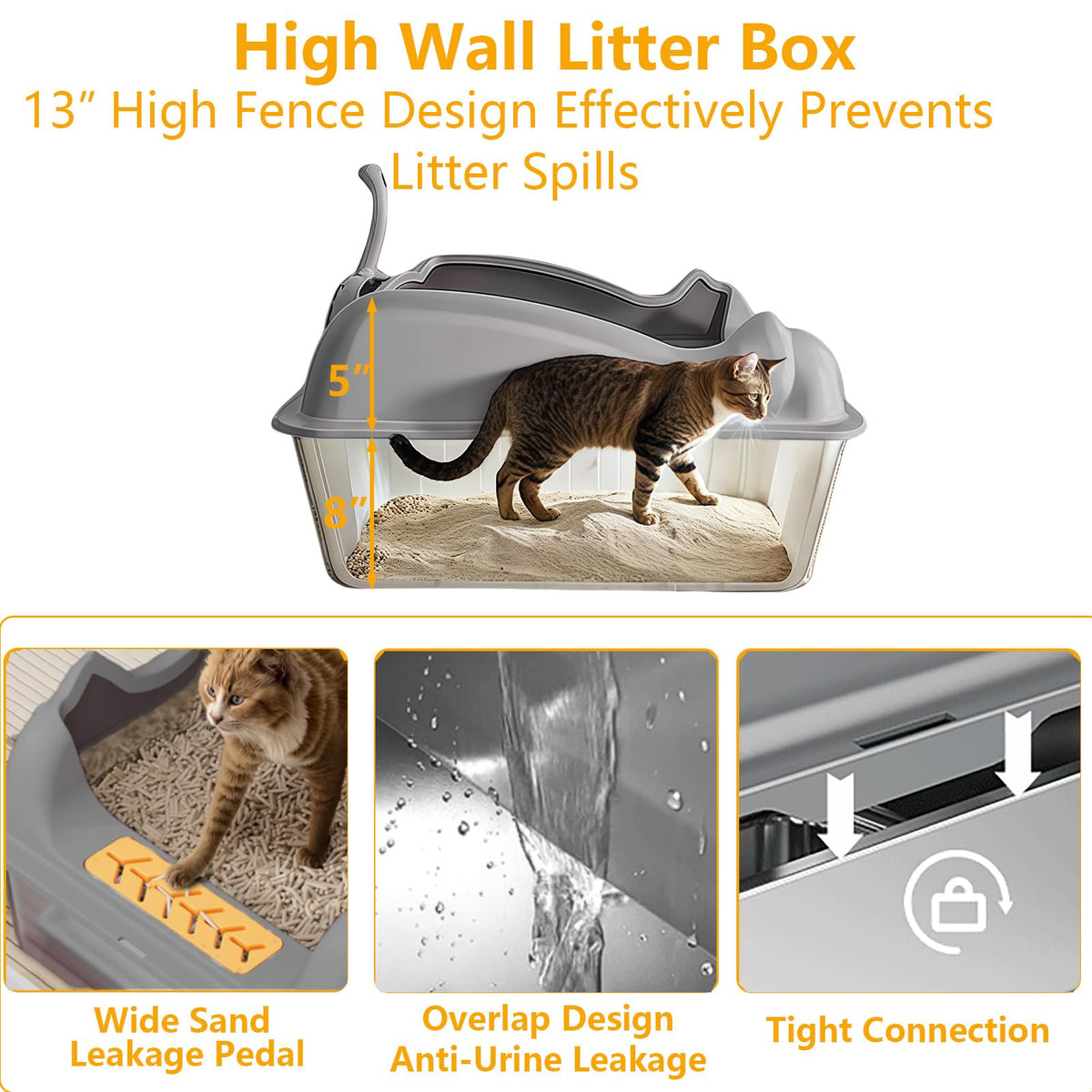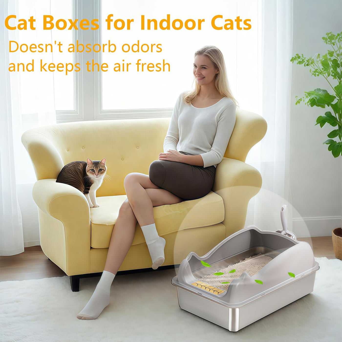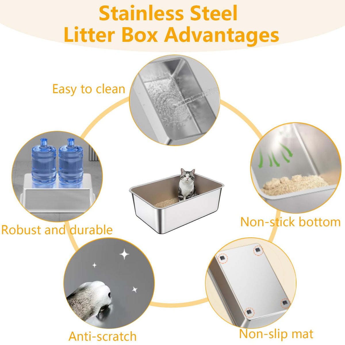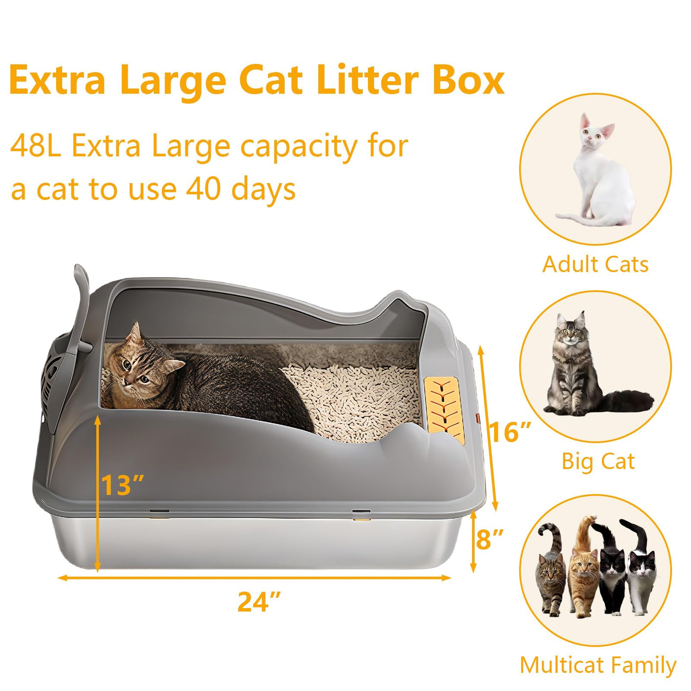 Keep Your Home Clean And Odor-Free With This Thoughtfully Designed Large Cat Litter Box. The High-Sided Box Walls Help Prevent Scattering, While The Spacious Interior Provides Plenty Of Room For Your Feline Friend To Move Around. The Sturdy, Durable Stainless Steel Base And Gray Plastic Cat-Shaped Top Pair For A Sleek, Modern Look That Blends Well With Your Home D Cor. The Included Handy Scoop Hangs Neatly On The Side For Easy Access. The Clever Entrance Design Helps Minimize The Number Of Times Cats Run Out Of The Stainless Steel Litter Box, While The Yellow Litter Leakage Pedal Helps Cats Remove Litter From Their Paws When They Leave The Large Stainless Steel Litter Box. Perfect For Single Or Multi-Cat Households, This Multi Cat Litter Box Combines Functionality And Style To Make Pet Care Easier And More Efficient