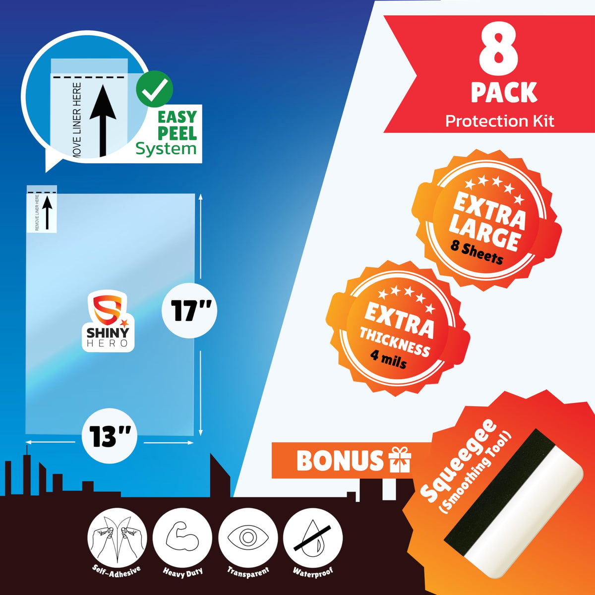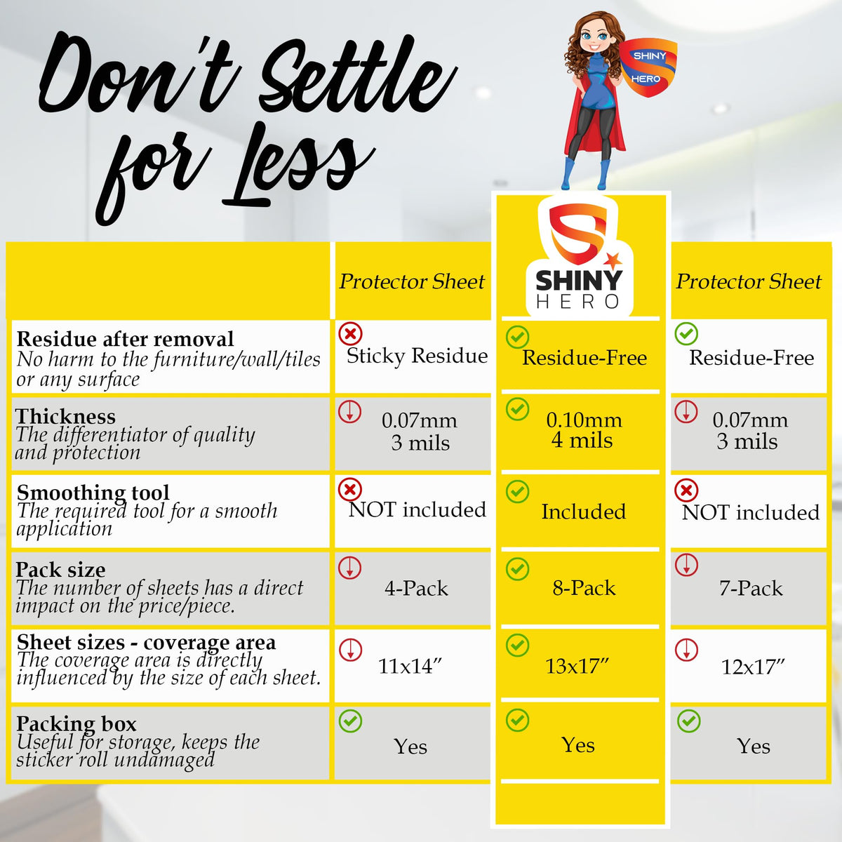 Backsplash Protector Plastic Sheet - Keeping Your Home Clean Is Easier Than Ever! Its the perfect solution to guard all surfaces against spills, stains, water, dirt, salt, and oil grease, while providing a cleaner and healthier household. You can remove any stains only with a soapy sponge without using cleaning tools or products that can damage the surfaces. The screen door protector from door anti scratching, clear wall protector, was designed having in mind the perfect balance between functionality and durability, allowing you to keep your walls or furniture clean without interfering with your interior decor. Made with high-grade plastic material, with an upgraded design that leaves behind no residue and a super-strong adhesive compatible with all smooth surfaces, this sheet protector will quickly become your go-to choice against backsplashes from muddy shoes, sloppy eating pets, dirty garage tools and more! Setting it up is actually simple; keep in mind that the surfaces must be smooth, free of dust, grease, or other impurities that may compromise the adhesive strength. This is an adhesive product; in exceptional cases, it may leave a sticky residue after removal. Don? worry! Use rubbing alcohol to clean the surface. Wide uses include pet feeding areas, anti-scratch door areas, garage areas, trash can splash guard, office and desk walls, Kitchen backsplash protector; Countertop protector, cupboards, pantry shelf liner, garage wall protector from tools, bicycle wheels or car door, cabinets, wardrobe, old or new furniture, appliances scratch protector; crafts, cover, poster&puzzle, baseboard; On glass, metal, wood, tiles, plastic, painted walls, drawing/writing desk&wall protector, behind the stove, under the sink, trash can wall protector, dogs & cats feeding area wall protector, door scratching protector, walls protector from chair back, under-desk wall protector at office or room;