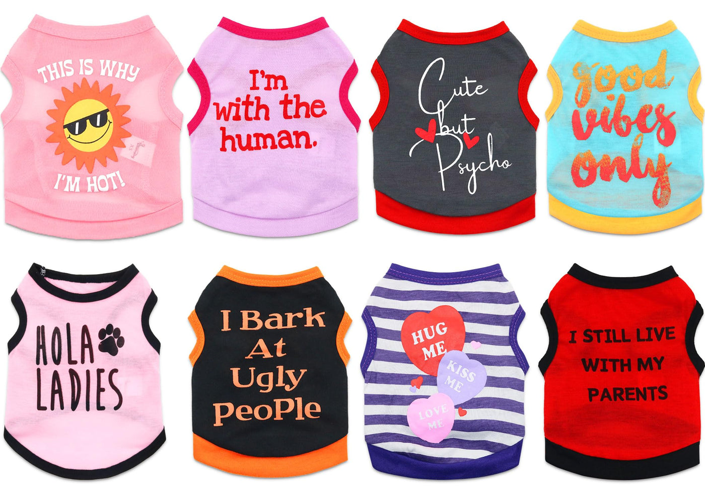 Dress Your Furry Friend In Style With This Adorable 8-Pack Collection Of Dog Shirts Designed Specifically For Small Female Dogs. Perfect For Chihuahuas, Yorkies, And Other Petite Pups, These T-Shirts Combine Fashion And Comfort. The Collection Features Cute Designs That Will Make Your Little Princess Stand Out During Walks Or Playdates. These Shirts Are Lightweight And Easy To Put On, Making Them Ideal For Daily Wear. The Versatile Set Provides Multiple Outfit Options To Keep Your Small Dog Looking Fresh And Stylish Throughout The Week. Each T-Shirt Is Sized For Small Breeds, But Please Measure Your Pet Carefully Before Ordering To Ensure The Best Fit. The Soft Material Helps Prevent Restriction Of Movement, Allowing Your Pup To Play, Run, And Relax Comfortably While Looking Absolutely Charming.