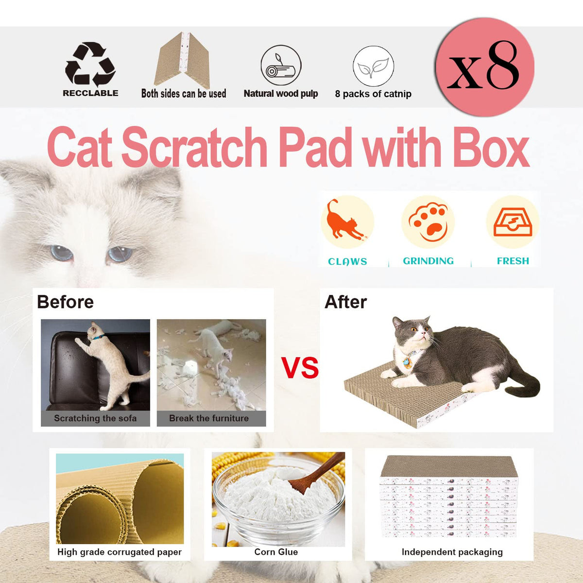 8 Packs In 1 Cat Scratch Pad, Cat Scratcher Cardboard,Reversible,Durable Recyclable Cardboard, Premium Scratch, Suitable For Cats To Rest, Grind Claws And Play