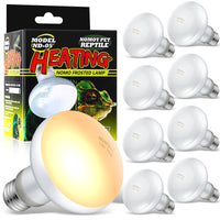 Q: What types of reptiles and amphibians can use these heat lamp bulbs?A: The 8 Pcs Reptile Heat Lamp Basking Spotlight Bulbs are suitable for a variety of reptiles and amphibians, including bearded dragons, tortoises, geckos, snakes, iguanas, toads, and turtles. These bulbs create a comfortable and warm environment essential for their well-being.