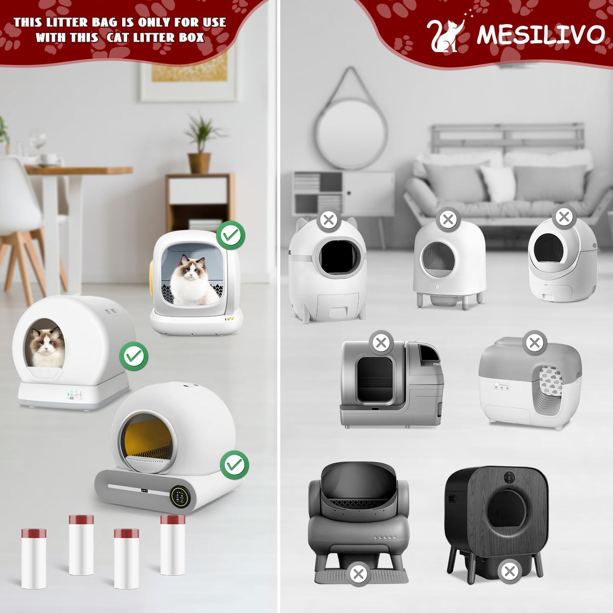 80 Count Self-Cleaning Litter Box Liners For Meowant Mw-Sc01/Mw-Sc02, Extra-Thick Drawstring Trash Bags 17.7X19.68 In, Odor-Proo