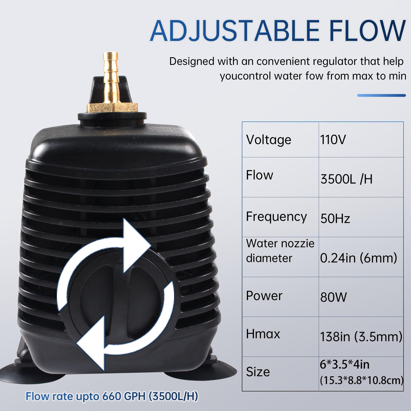 80W 110V Water Pump Flow 3500L/H Hmax 3.5M Dry Run Protetion Mutifuctional Submersible Pump For Cnc Spindle Motor, Miniature Foutains, Air-Conditioning Fan, Miniascape Foutain, Aquarium Fish Tank
