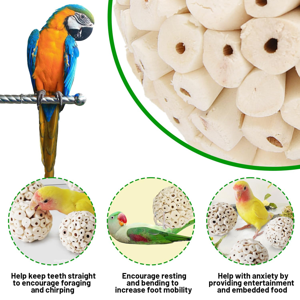 9 Pieces Bird Parrot Chew Toy Sola Balls, Natural Parrot Soft Chew Shredding & Foraging Toy, Bird Foot Balls For Cockatiel Conur
