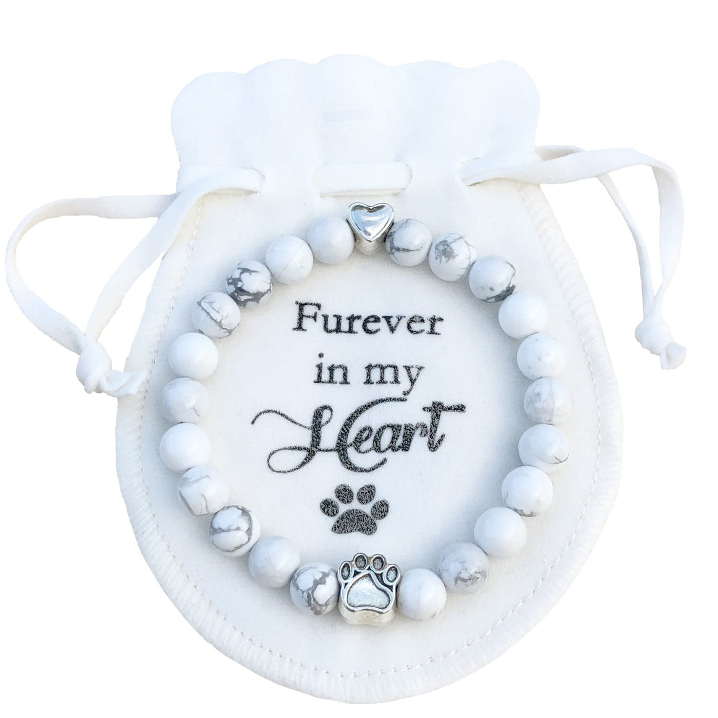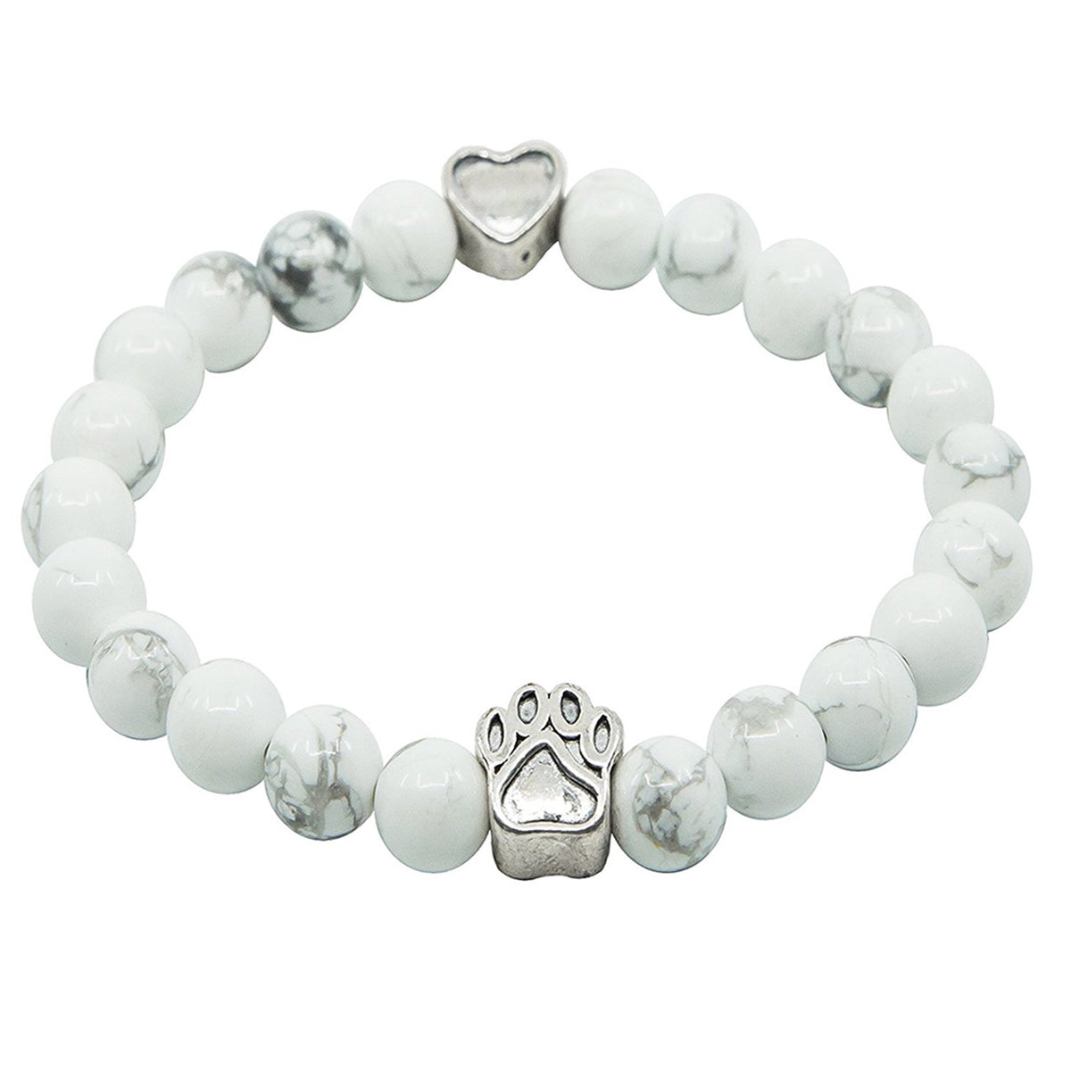 Q: How does the bracelet symbolize the bond with my pet?A: This bracelet includes symbolic beads: the paw bead represents the paw prints left on your heart, the heart bead symbolizes the piece of your heart taken by your pet, and the 22 white turquoise beads signify all the beautiful moments shared together.