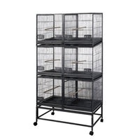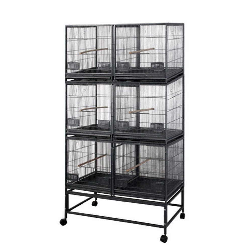 Q: How many birds can the 6-unit breeder cage accommodate?A: The cage features 3 removable dividers, allowing for up to 6 separate cages, making it suitable for breeding multiple birds at once.