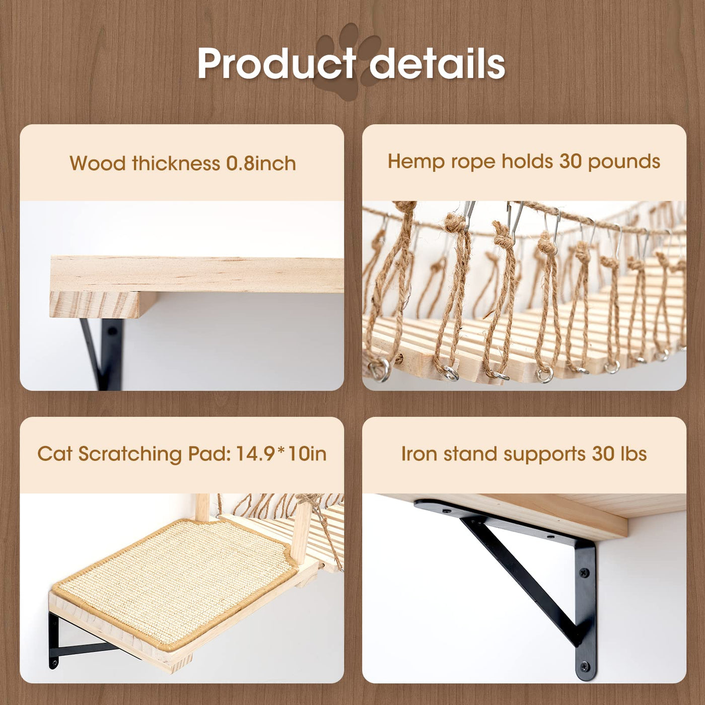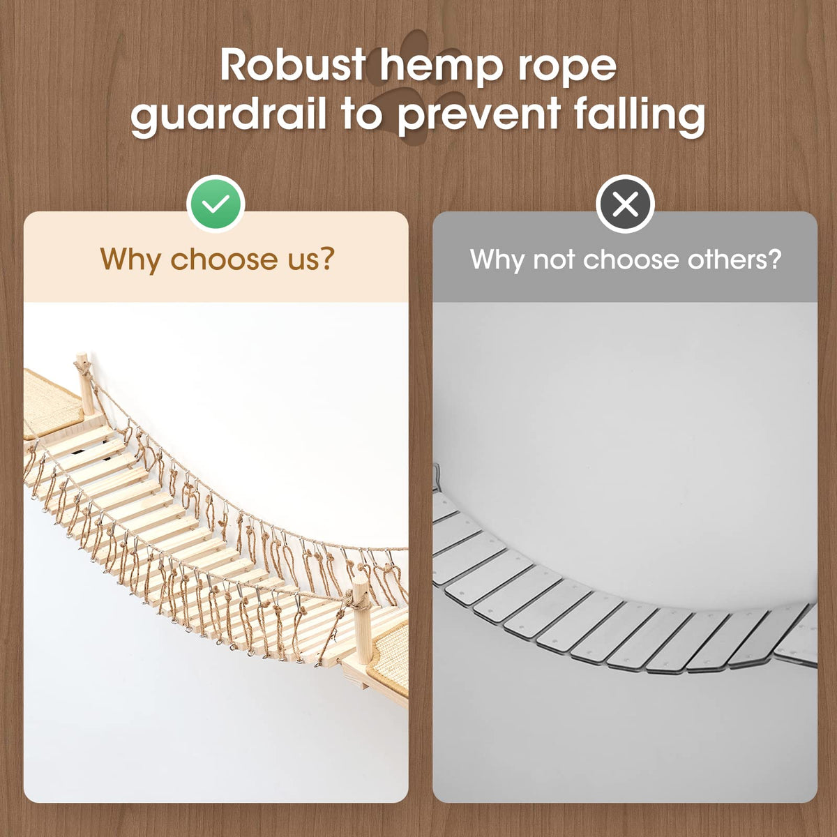 A.Fati Wall-Mounted Cat Roped Bridge Long For Indoor Cats, Cat Wall Shelves For Sleeping, Playing, Climbing, Wooden Cats Bed And