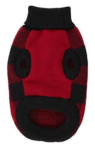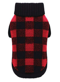 A&L Red Dog Sweater British Plaid Knitted Xmas Holiday Festive Turtleneck Pet Sweater,Large (L) 16' Back Length