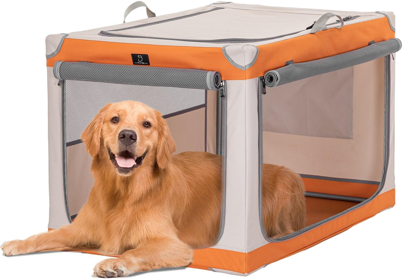 A4Pet Collapsible Dog Crate, Soft Sided Dog Crate - 36 Inch Adjustable Stainless Steel Frame, Lightweight, Durable And Portable Crate With 3-Door, Portable Dog Kennel
