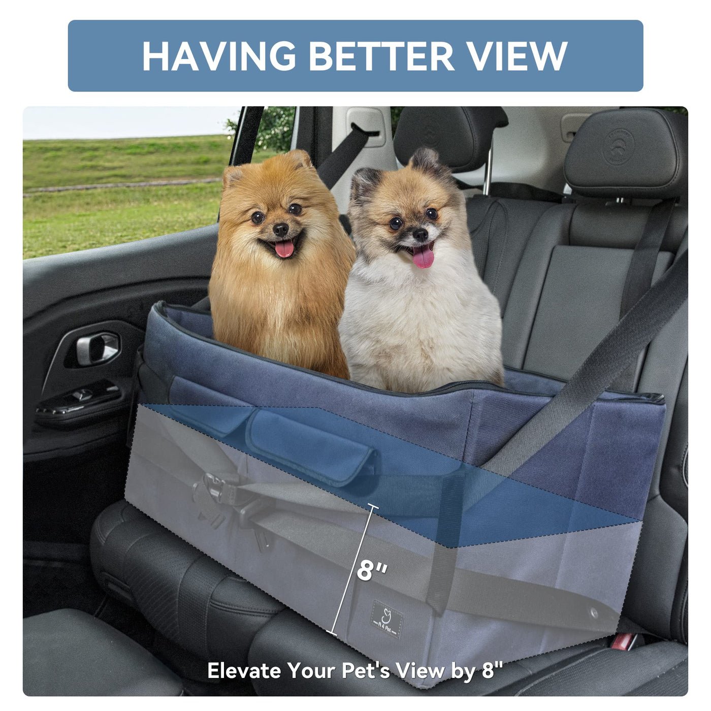 A4Pet Dog Car Seat Medium Large Size Dog - Large Dog Car Seat For 2 Dogs Large Dogs With Washable Cover, Safety Leashes, Storage Pockets - Pet Car Seat, Dog Booster Car Seat - Foldable & Portable