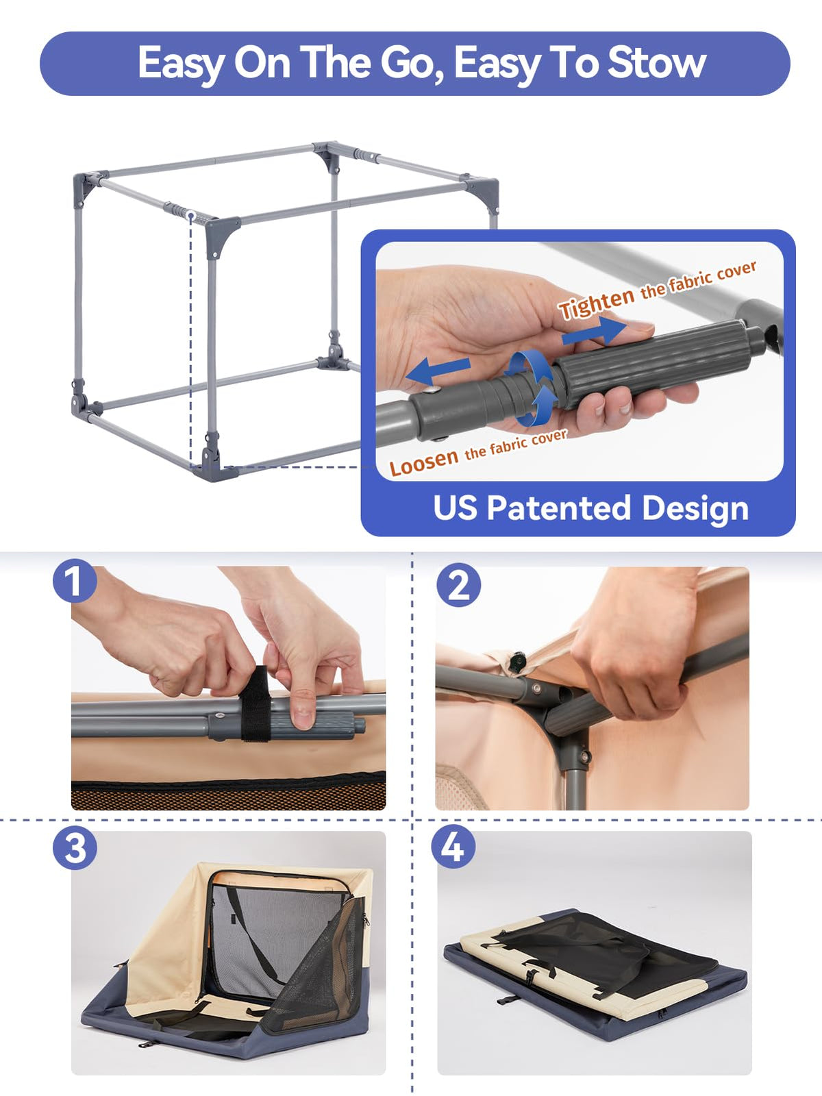 A4Pet Portable Dog Crate, Foldable Dog Crate - 40 Inch Adjustable Stainless Steel Frame, Lightweight, Durable And Soft Crate Wit