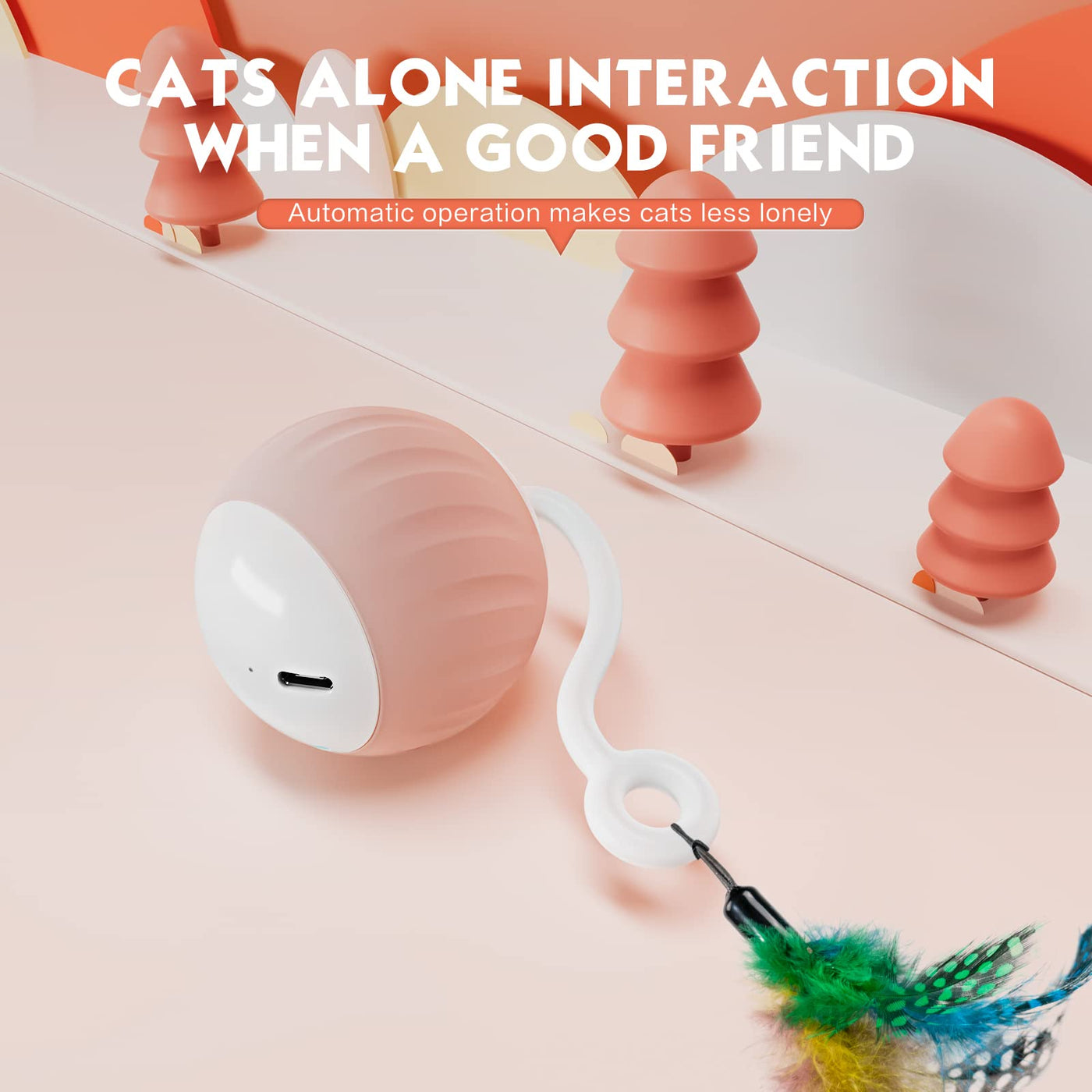 Aaa Amusang Interactive Cat Ball Toy And Feather Toys Refills For Indoor Cats, Automatic Cat Enrichment Toys - Pink