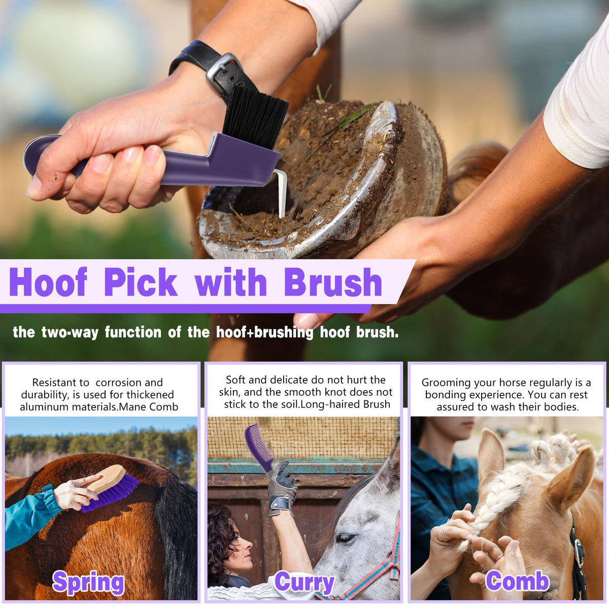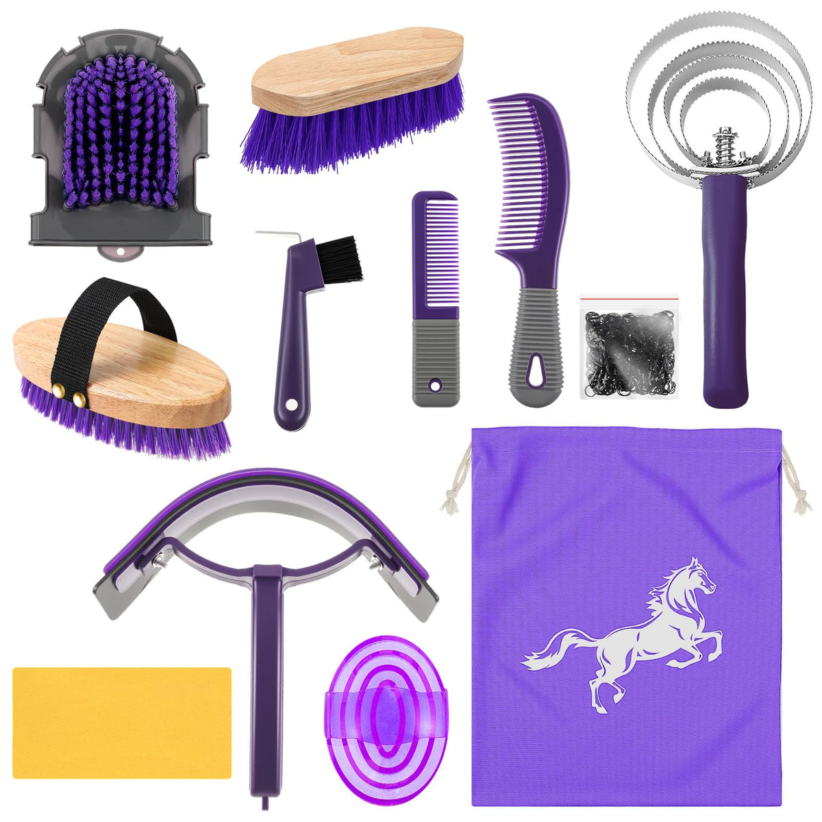 Abbylike 12 Pieces Horse Grooming Kit Racing Festival Tack Room Supplies Horse Brush Sets Equine Care Cleaning Kit Shedding Groo