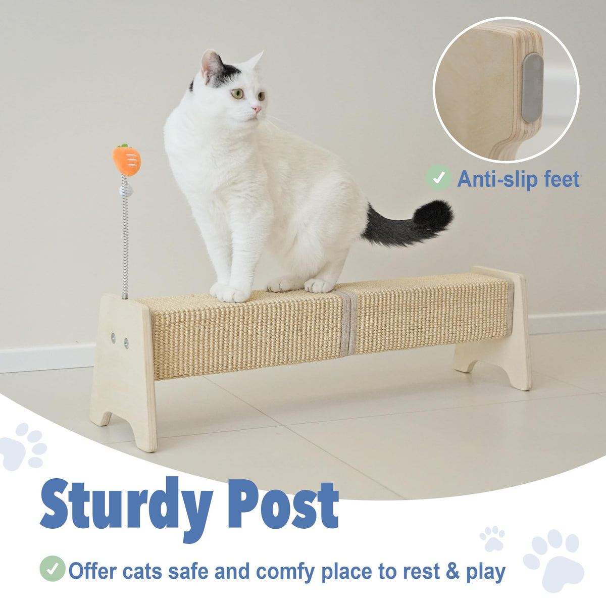 Aberatail Cat Scratching Post, 30' Horizontal Sisal Scratch Post For Indoor Cats, Durable Cat Furniture Protector With Spring T