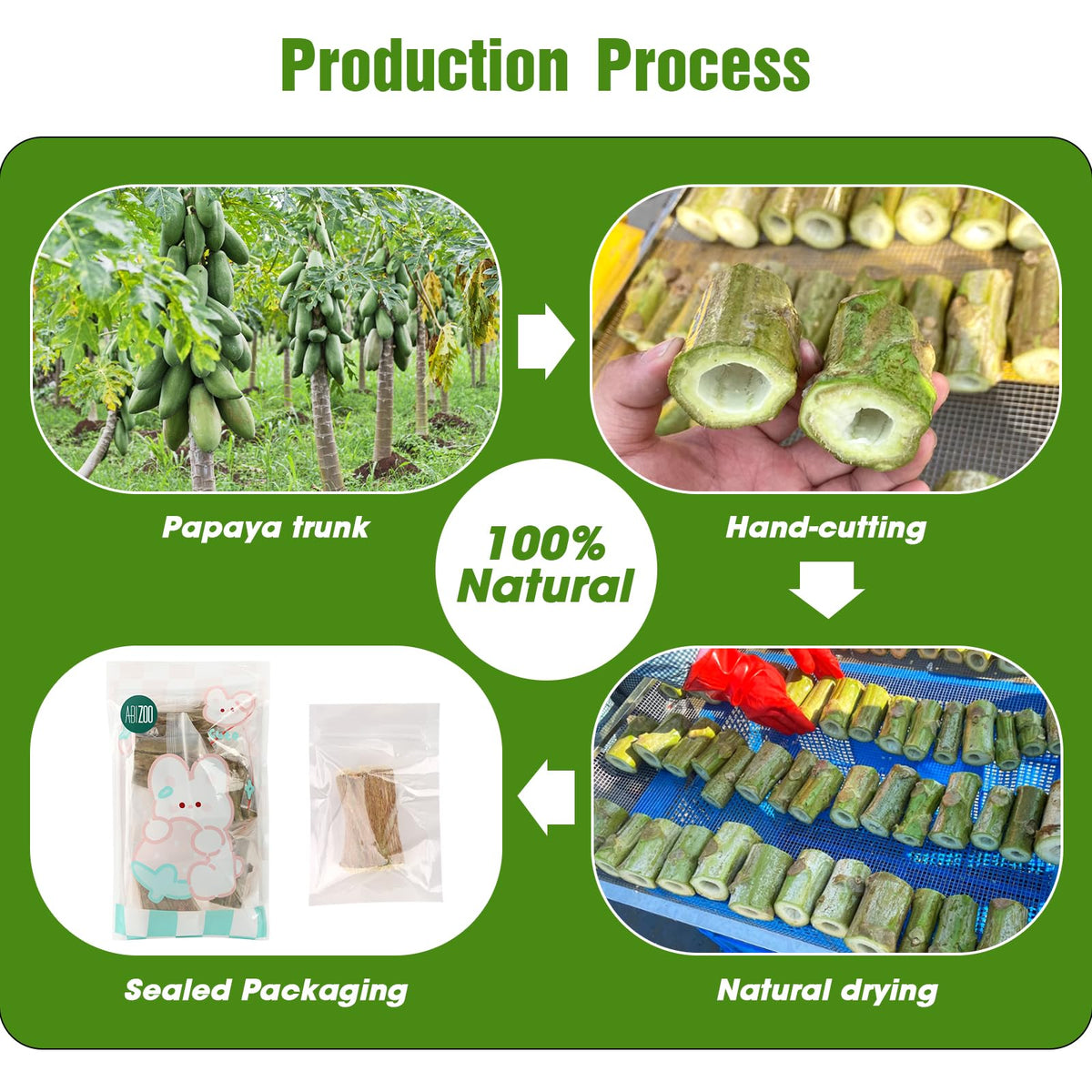 Abizoo Natural Bunny Chew Toys,6 Pcs Organic Papaya Wood Sticks Chew Toys for Rabbit,Hamster,Guinea Pig,Chinchilla,Gerbil,Rat He