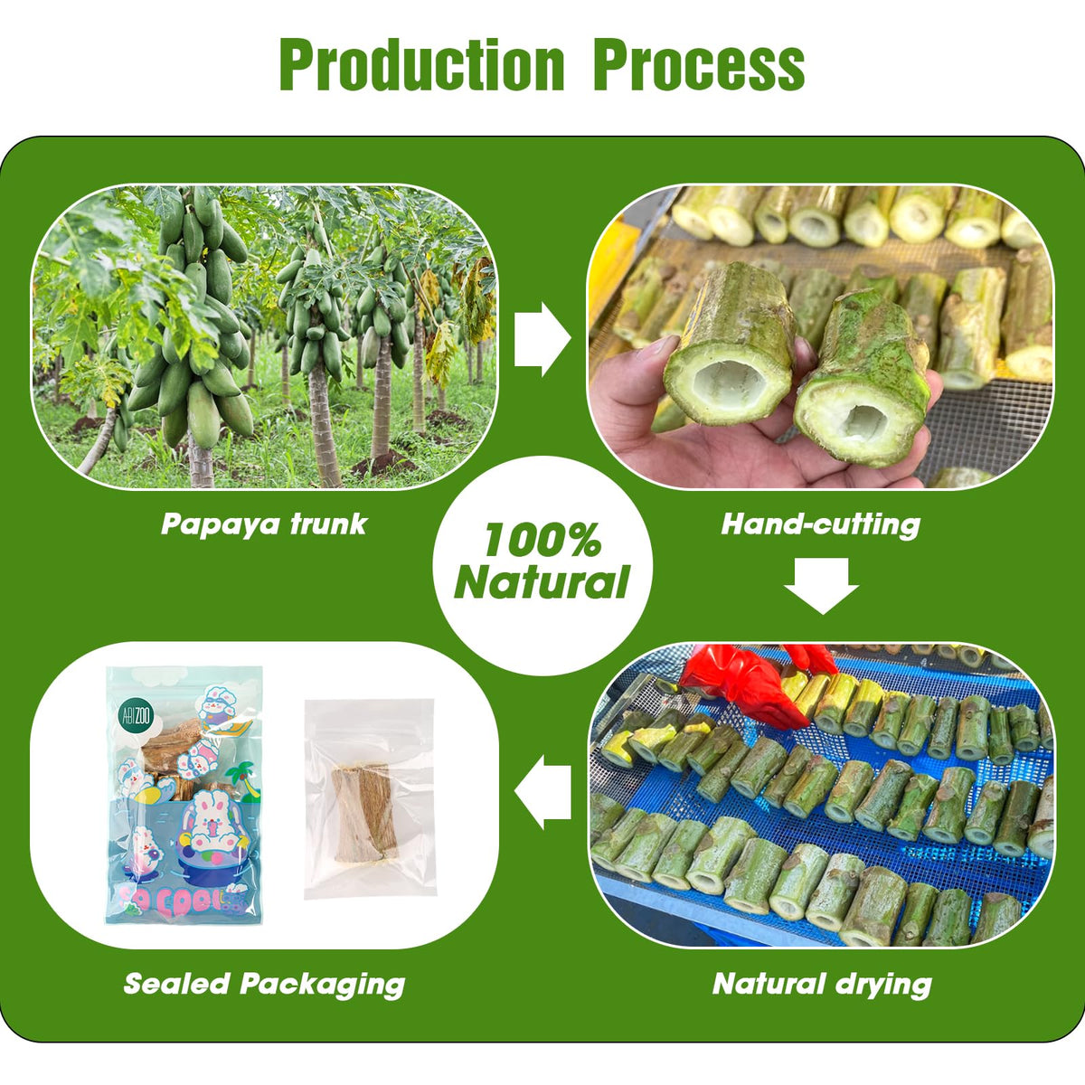 Abizoo Rabbit chew Toys for Bunnies,4 Pcs Natural Papaya Wood Chew Sticks Bunny Chews for Teeth Chinchilla Guinea Pig Hamster Ge