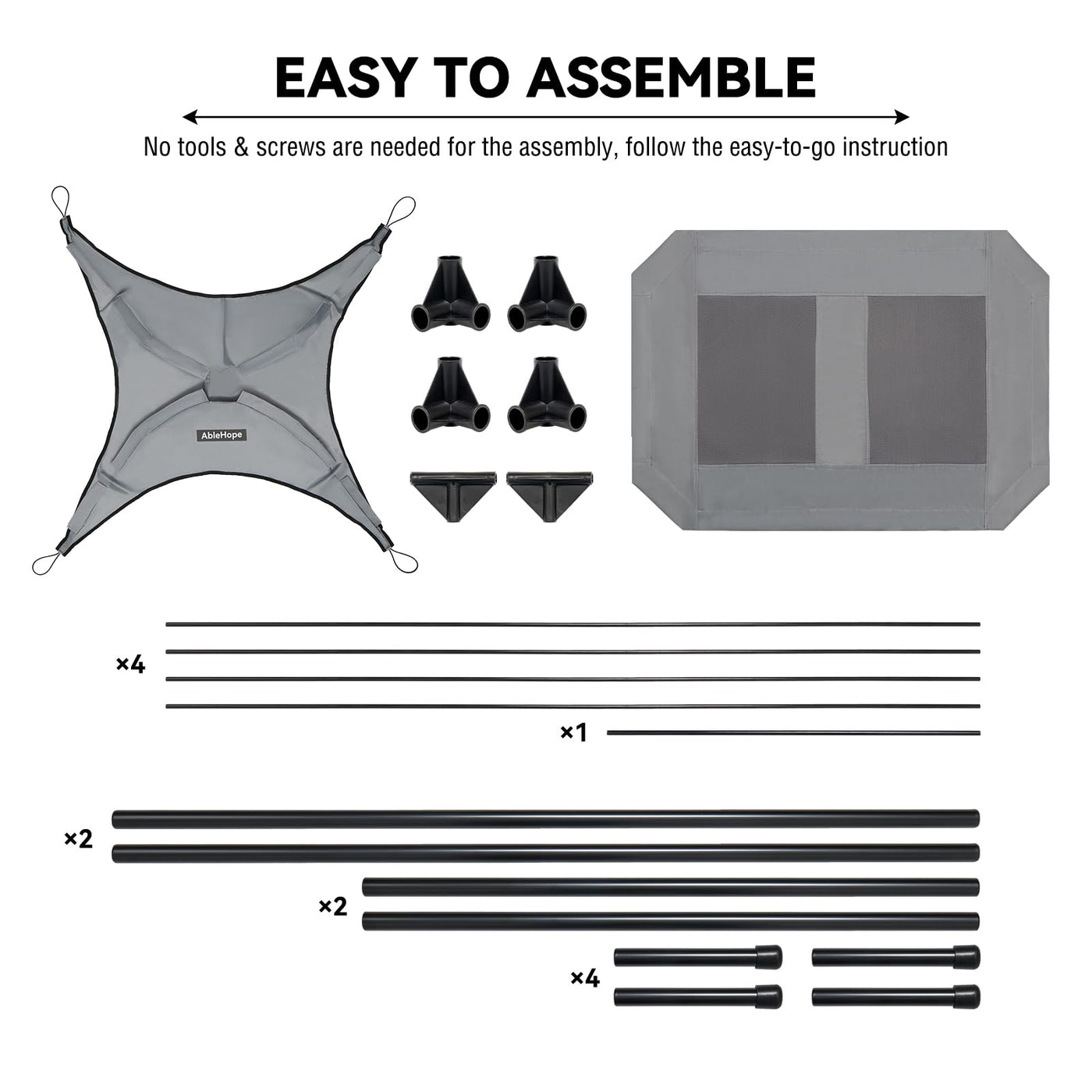 Give your furry friend the ultimate outdoor relaxation spot with this elevated pet cot featuring a protective canopy. The AbleHope raised dog bed combines comfort and shade, perfect for keeping your pet cool during warm days. The sturdy elevated design promotes airflow while keeping your pet off hot or cold ground. The durable mesh surface is easy to clean and quick-drying, making it ideal for both indoor and outdoor use. The canopy provides essential shade protection, while the stable frame ensures the bed stays firmly in place. Suitable for dogs of various sizes, this versatile pet cot can be used in the backyard, patio, camping trips, or inside your home. The gray color scheme offers a sleek, modern look that complements any setting. The beds portable design allows for easy setup and storage when not in use, making it a practical solution for pet owners who want to provide their dogs with a comfortable resting spot wherever they go.