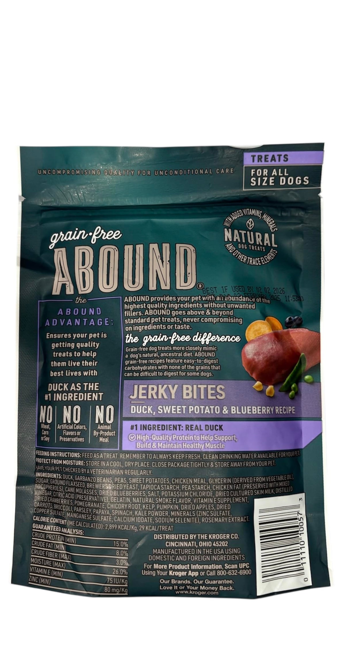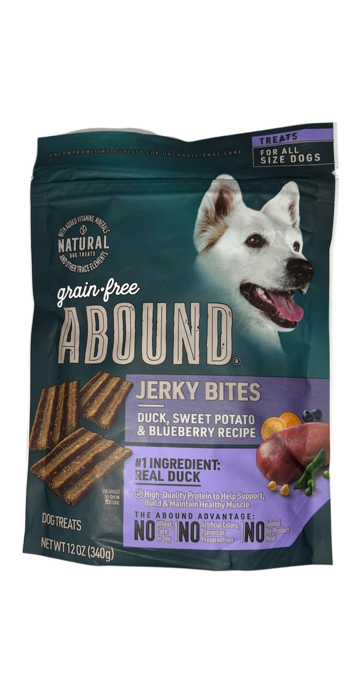 ABOUND provides your pet with an abundance of the highest quality ingredients without unwanted fillers. ABOUND goes above & beyond standard pet treats, never compromising on ingredients or taste. Grain Free dog treats more closely mimic a dogs natural, ancestral diet. ABOUND Grain Free recipes feature easy to digest carbohydrates with none of the grains that can be difficult to digest for some dogs.