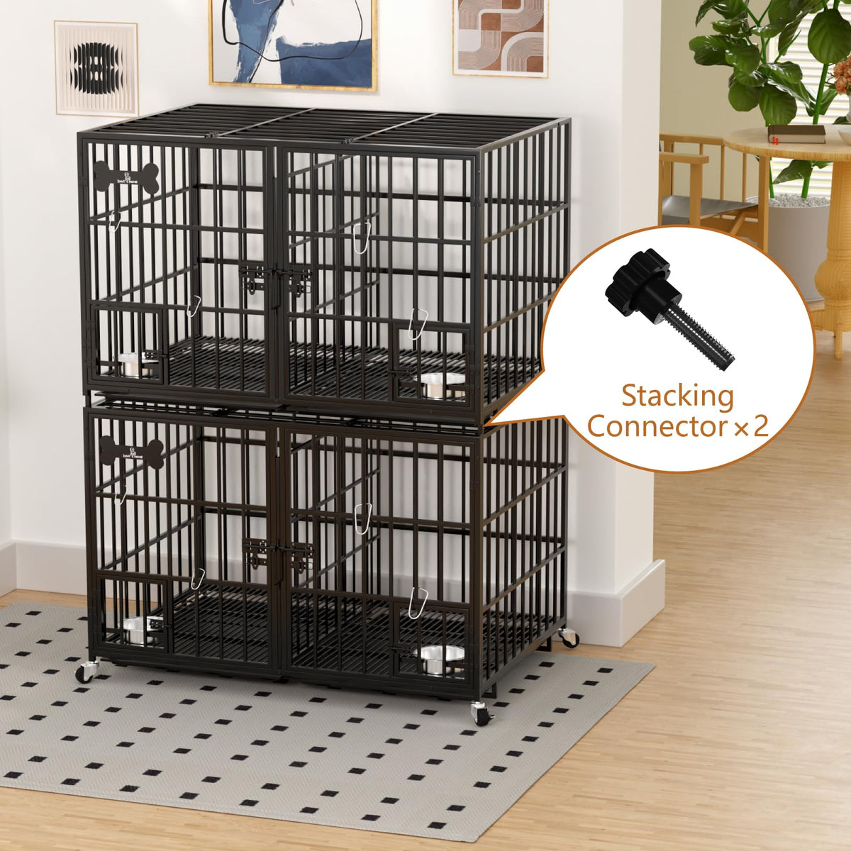 Aboxoo 42 Inch Stackable Heavy Duty Metal Dog Crate For 4 Dogs/Large Dog,All Metal Open Top Access,Escape Proof Cage,Dog Kennel