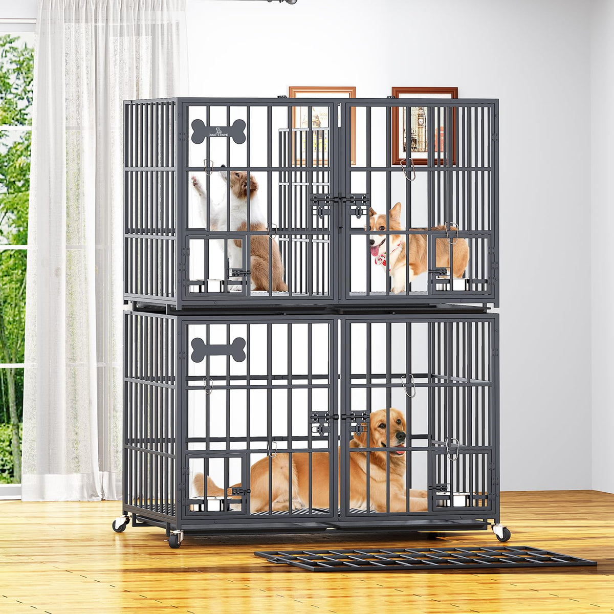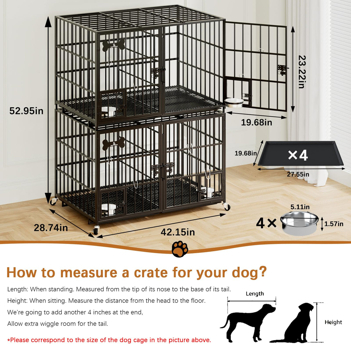 ?Sturdy & Safe?The Overall Size Of The Dog Crate Is 42.13 * 28.74 * 53Inch (107 * 73 * 134.5 Cm).This Sturdy Dog Crate Is Constructed Of High Quality And Strong Metal Frame Structure, The Frame Is Coated With Multiple Layers Of Protective Coating To Prevent Rust And Corrosion. The Coating On The Frame Is Non-Toxic And Safe For Dogs.The Rust-Resistant And Sturdy Construction Makes This Dog Crate Both Strong And Safe For Your Pet'S Daily Use.