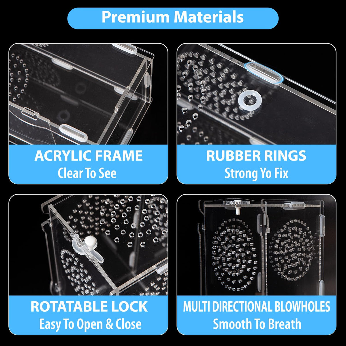 Create The Perfect Habitat For Your Small Pets With This Versatile Acrylic Terrarium Featuring A Convenient Front-Opening Door. This Well-Designed Enclosure Provides Excellent Visibility While Maintaining Proper Ventilation For Various Creatures Including Jumping Spiders, Tarantulas, Insects, Frogs, Praying Mantis, And Snails. The Transparent Acrylic Construction Allows You To Observe Your Pets' Fascinating Behaviors And Activities From All Angles. The Front-Opening Door Makes Maintenance, Feeding, And Cleaning Simple And Stress-Free, While Reducing The Risk Of Escape During Care Routines. The Ventilation System Helps Maintain Optimal Airflow And Humidity Levels Suitable For Different Species. This Spacious Enclosure Offers Ample Room For Your Pets To Move, Climb, And Thrive In Their Environment. Whether You'Re A Seasoned Keeper Or New To The Hobby, This Terrarium Provides An Ideal Living Space For Your Small Exotic Pets.